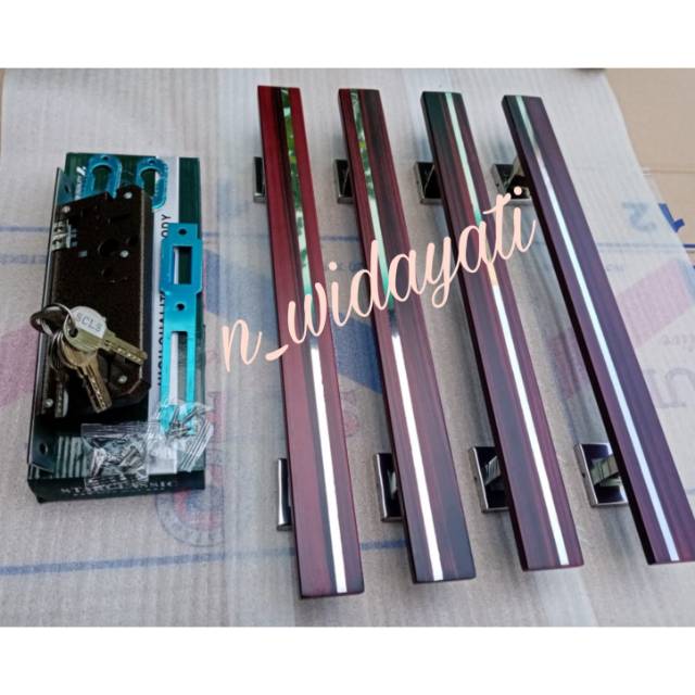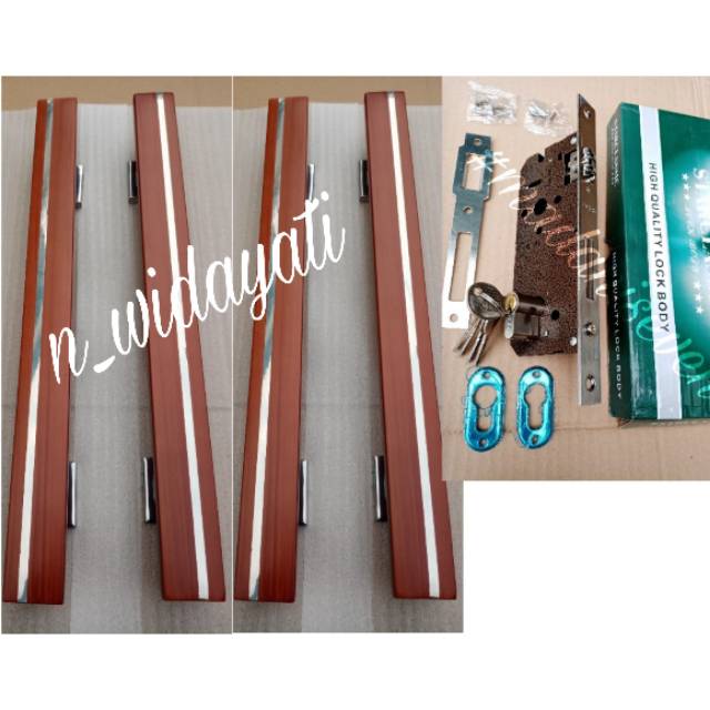 Handle Pintu Rumah Minimalis/ Tarikan Gagang Pintu Stainless Set + Kunci
