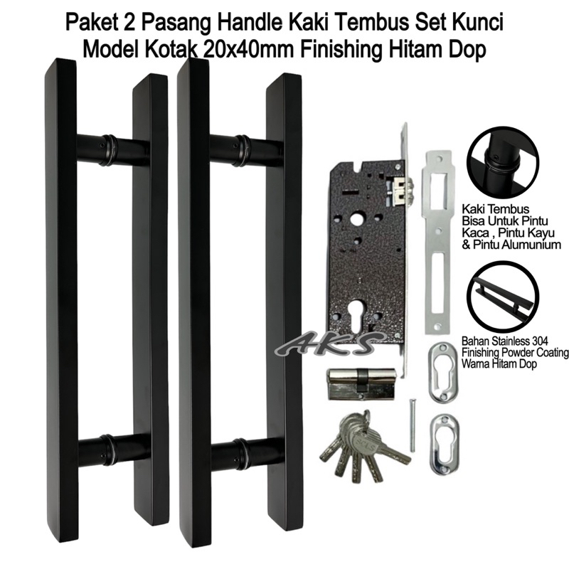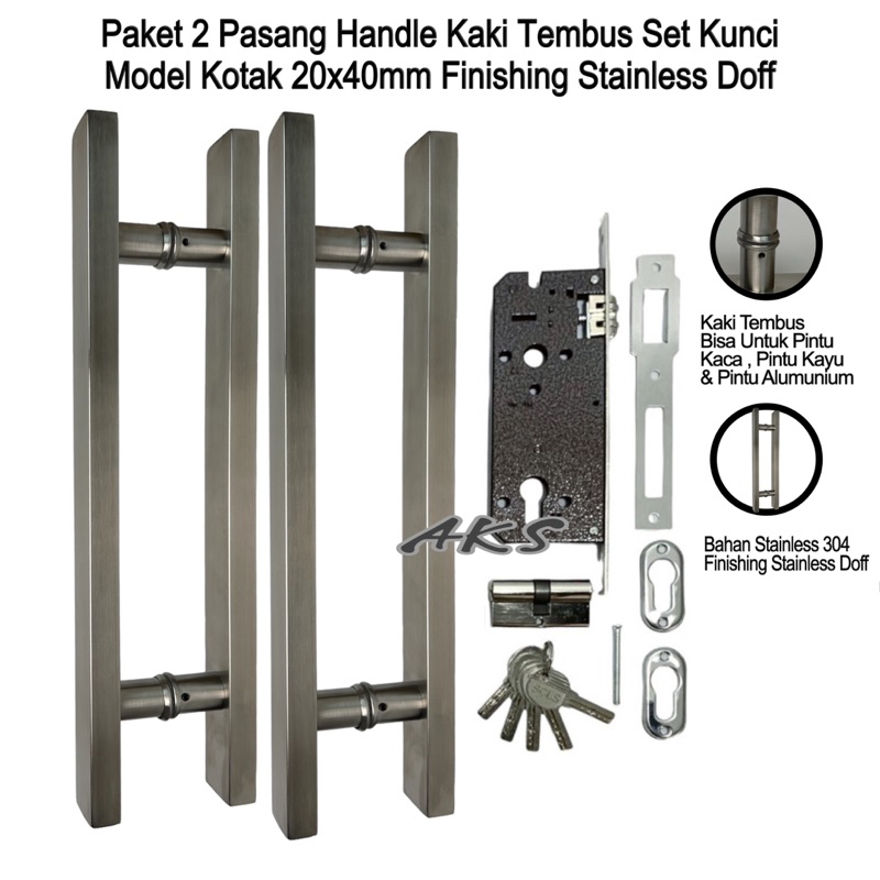 Paket 2 pasang handle pintu kaki tembus set kunci el kotak 20x40mm tarikan gagang pintu rumah handle pintu rumah stainle