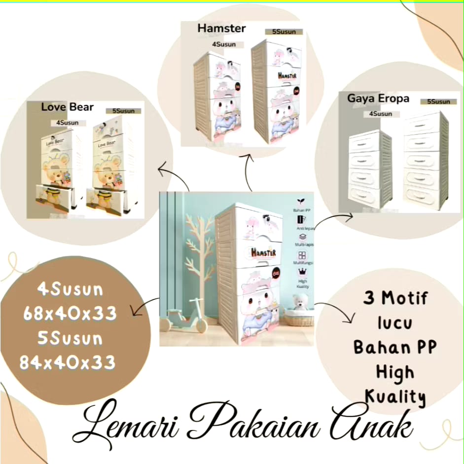 SALE lemari plastik berkualitas 2025 Lemari Pakaian Plastik Susun 4 Susun 5 Lemari Baby Karakter Lucu BERGARANSI