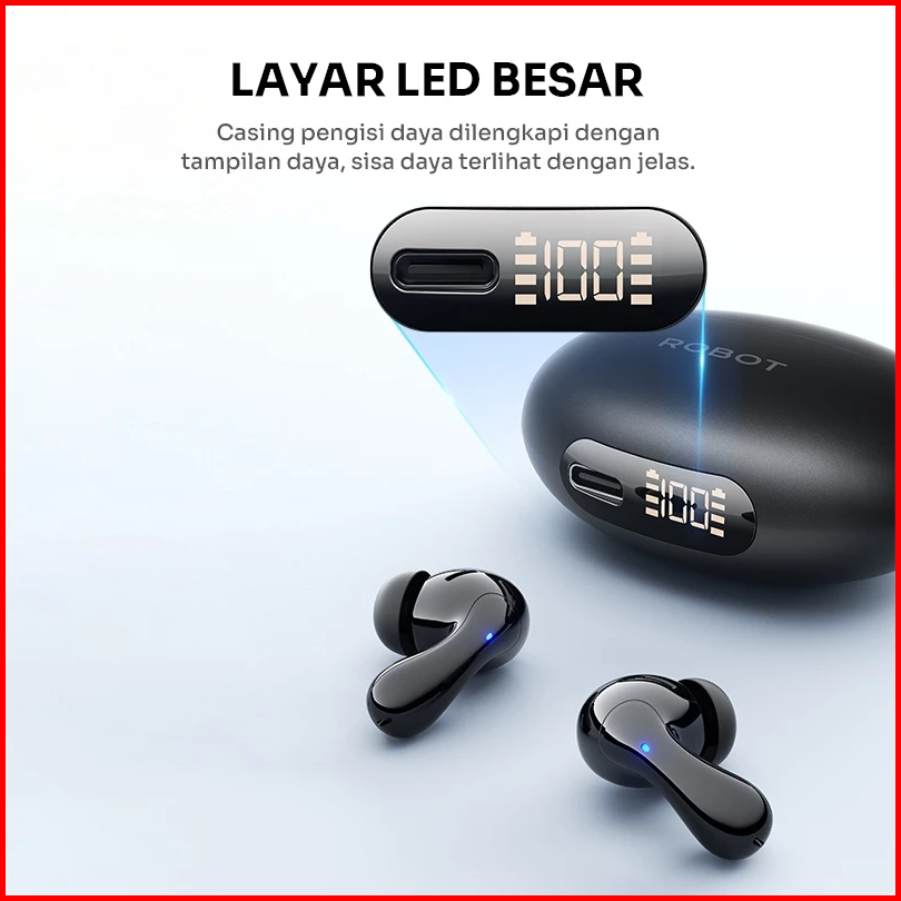 Robot Tws Nova T3 Headset Wireless Bluetooth 6.0 Powerful Bass Tampilan Daya Led Original Resmi