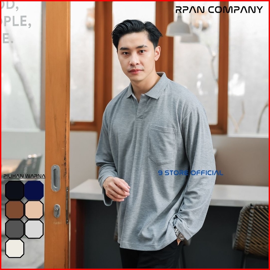 Oversize Polo Shirt Longsleeve Pocket Pria Premium Baju Kaos Berkerah Tangan Panjang Baju Kerah Saku Pria 20s.