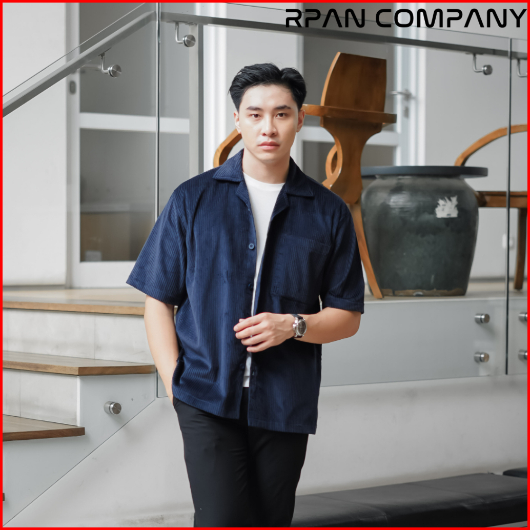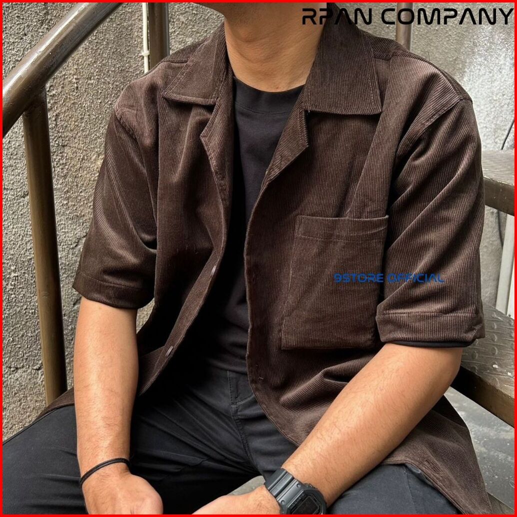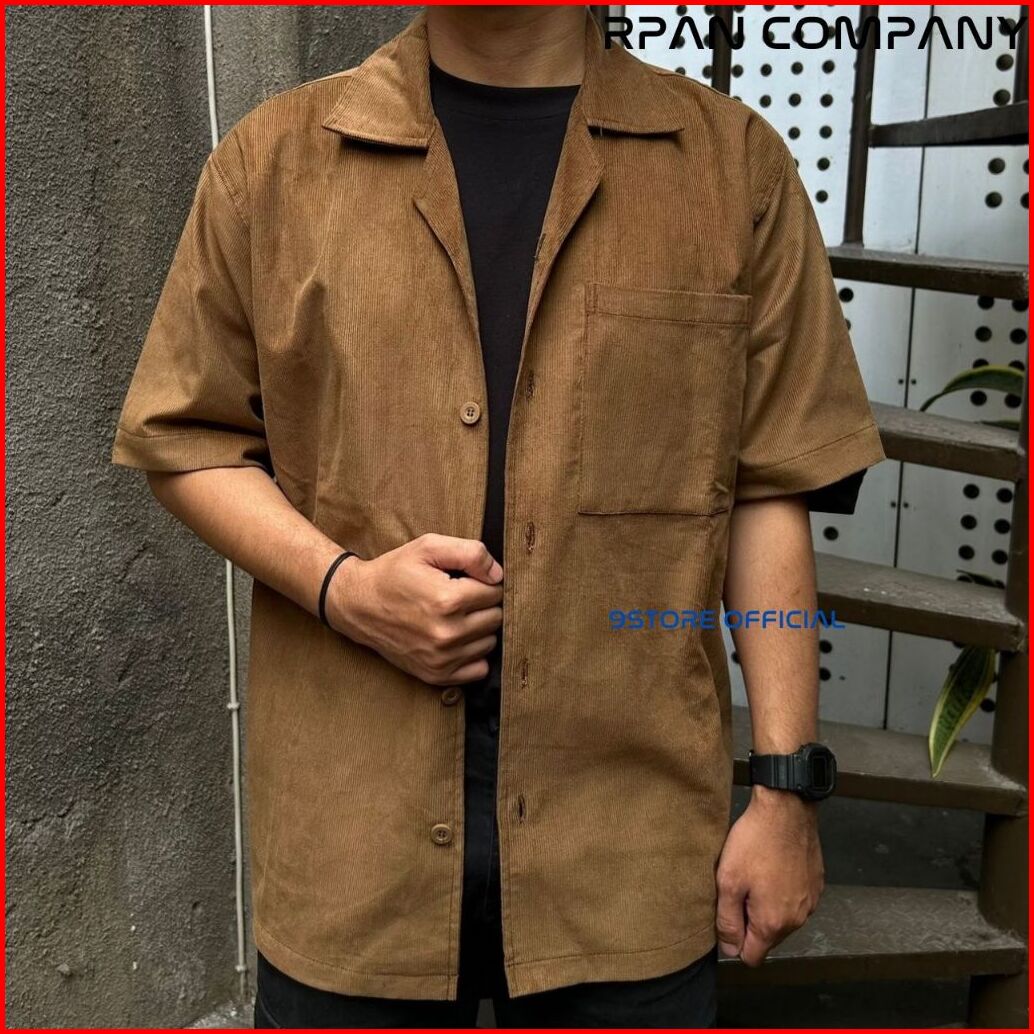 Kemeja Cuban Bowling Shirt Corduroy Oversize Baju Kemeja Oversize Coduroy Lengan Pendek Cuban Bowling Shirt Pria.