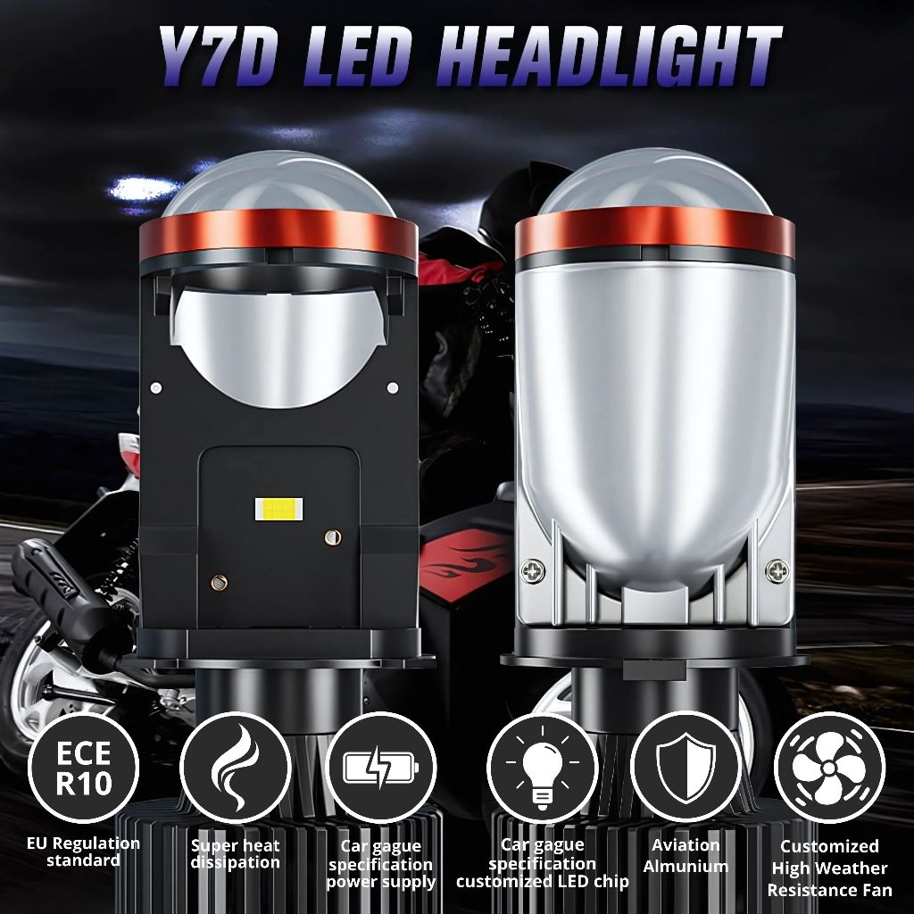 Autolume Y7D Lampu Led Biled Mobil & Motor H4 – Mini Projie 85W, Super Bright,White Light 6000K, Anti Silau, Plug & Play