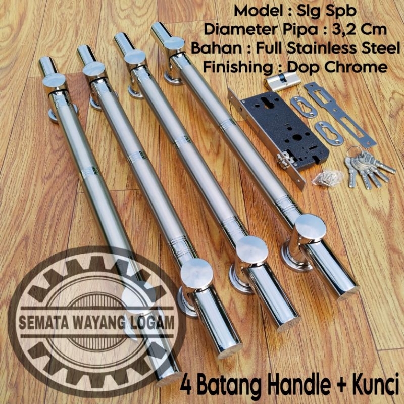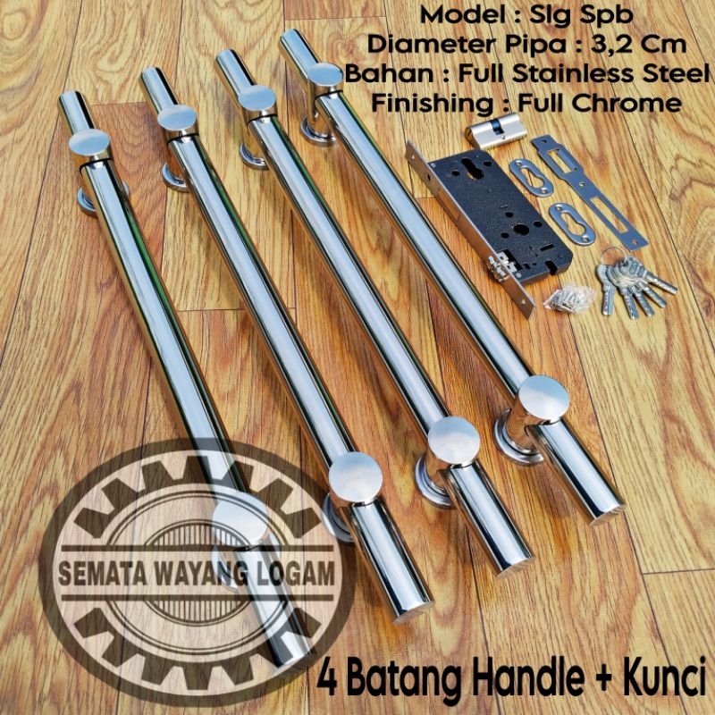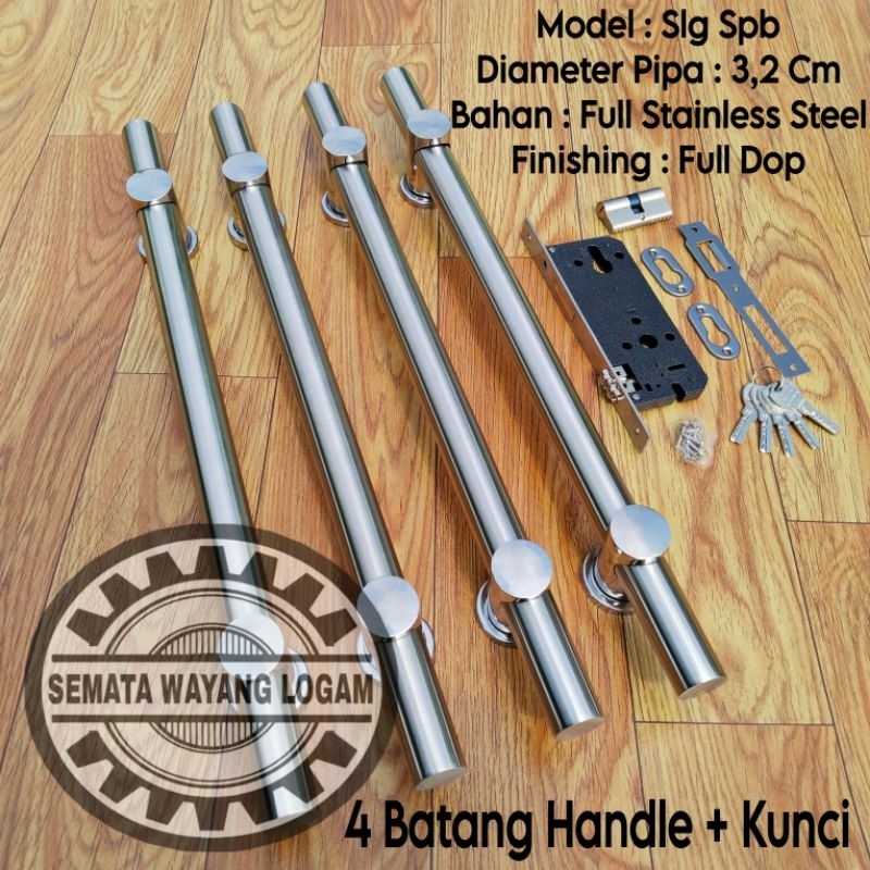 4 Pcs Handle Pintu Rumah Stainless Steel Set Kunci 60cm 45cm Gagang Tarikan Pintu Kupu Tarung Minimalis