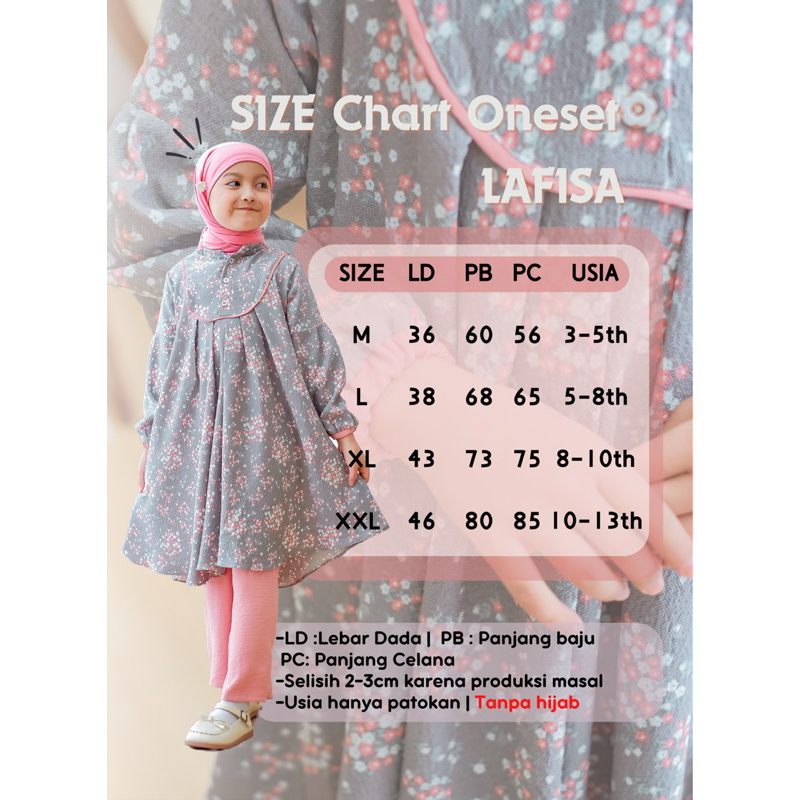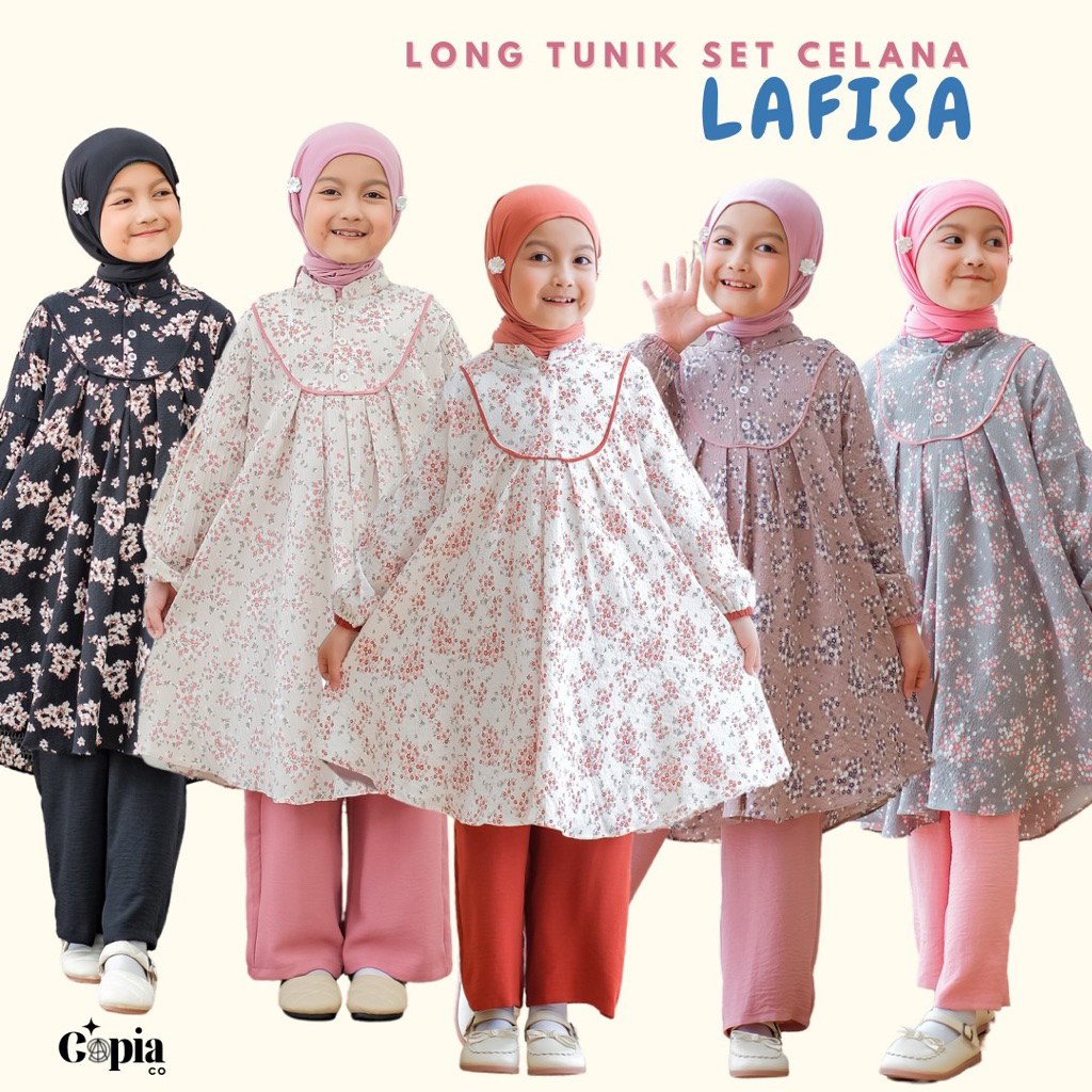 Baju Tunik Anak Copio - Oneset Lafisa Setelan Anak Perempuan Long Tunik Set Celana - Umur 3 - 13 Tahun All Varian