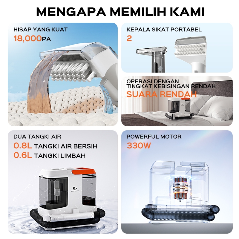 HAN RIVER Vacuum Cleaner 18KPa Wet Pembersih Deep 3-IN-1 Mesin Kain/Karpet/Sofa/Kasur/Interior Car