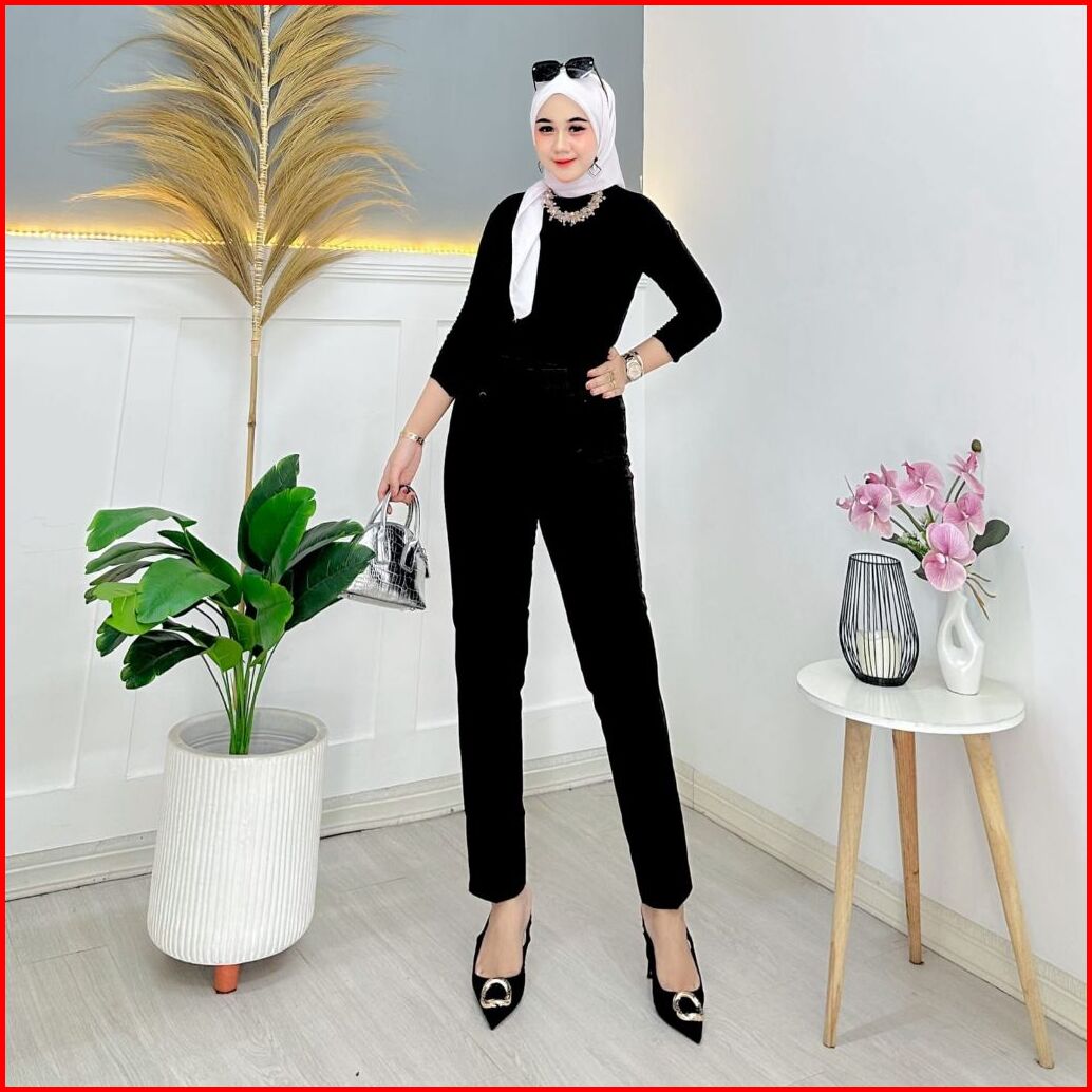 Celana Kain Wanita Celana Kerja Wanita Pinggang Karet Dan Resleting Kancing Celana Kantor Wanita Celana Panjang Jumbo Ce