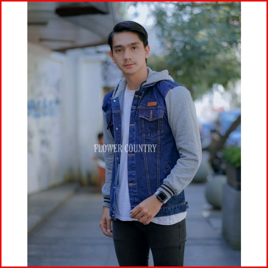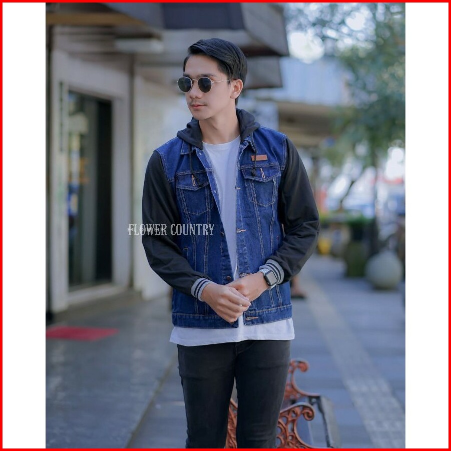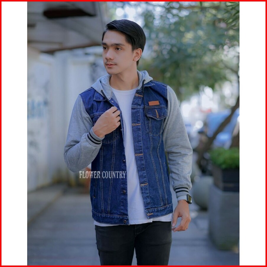 Tans - Jacket Jeans Denim Reglan Pria Jaket Jeans Boy Hoodie Kombinasi Fleece Big Size M L Xl Xxl