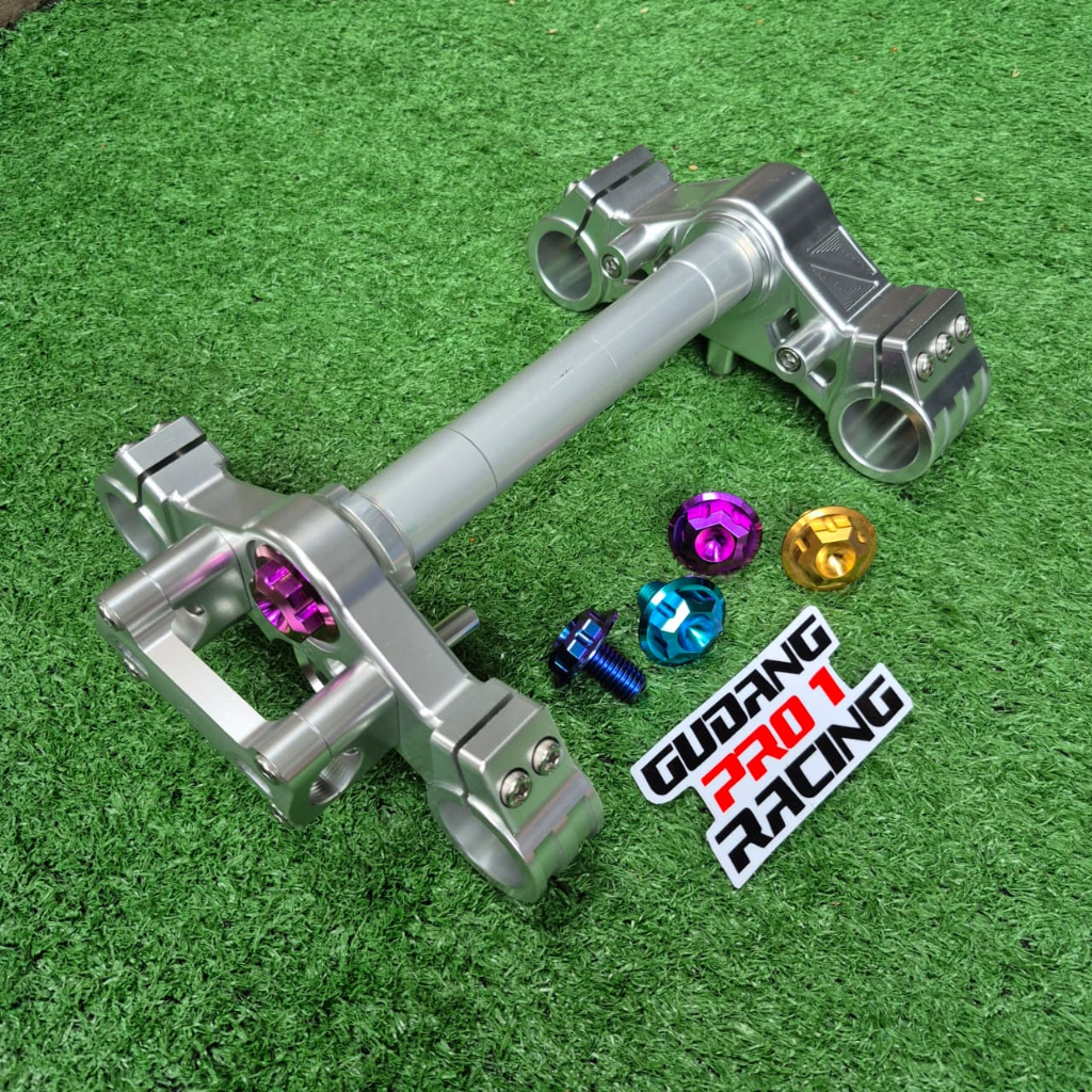 SEGITIGA TRIPLE CLAMP ATAS & BAWAH GEN 3 NINJA R SS 150 BAUT KOMSTIR TITANIUM PRO1 RACING