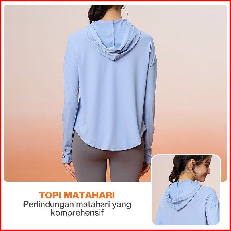 Wizi Anti Uv Atasan Olahraga Longgar Hoodie Wanita Pakaian Olahraga Lengan Panjang Upf 50