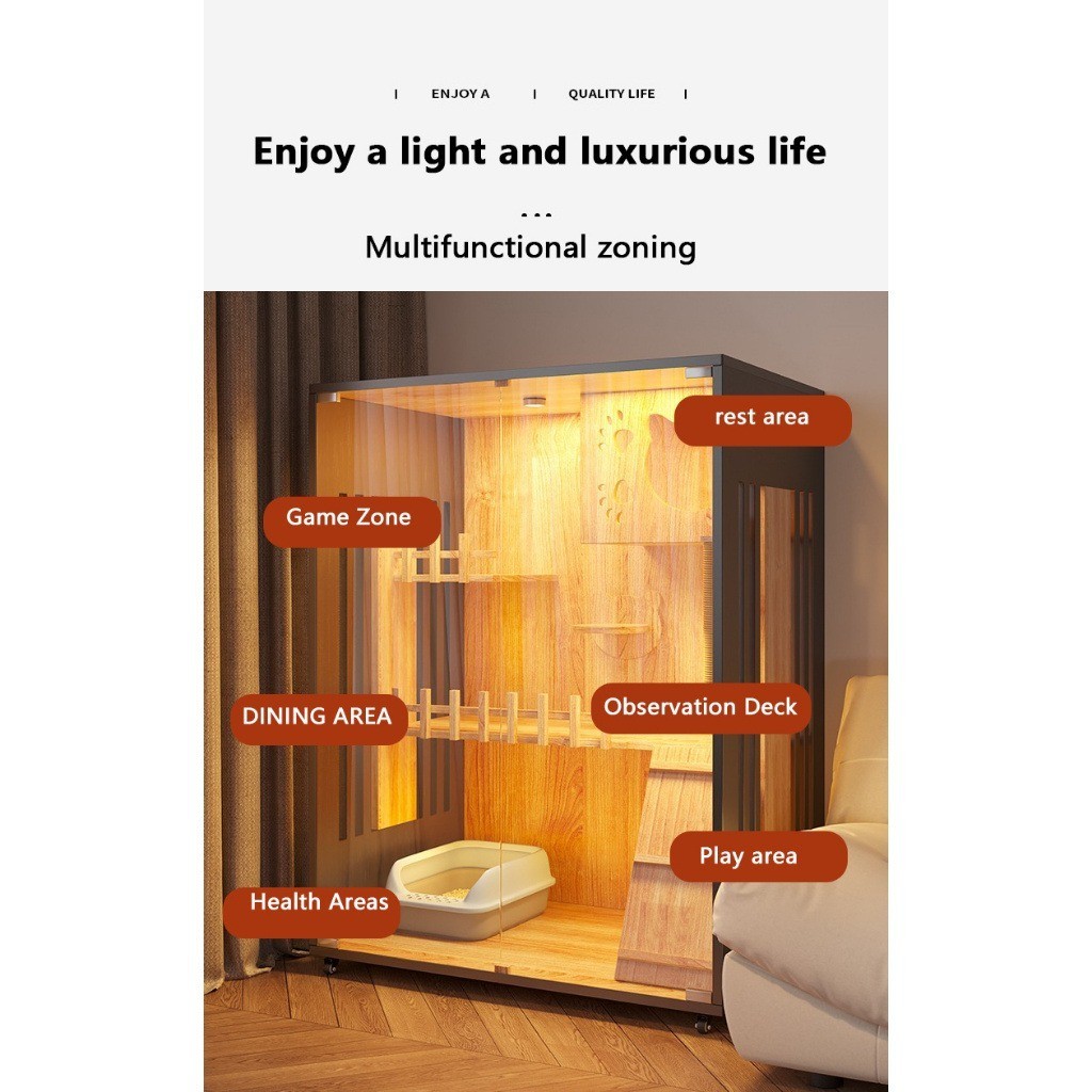 Rumah Kucing Kandang Anti Scratch Rumah Kayu Villa Pondok Kucing Pintu Kaca