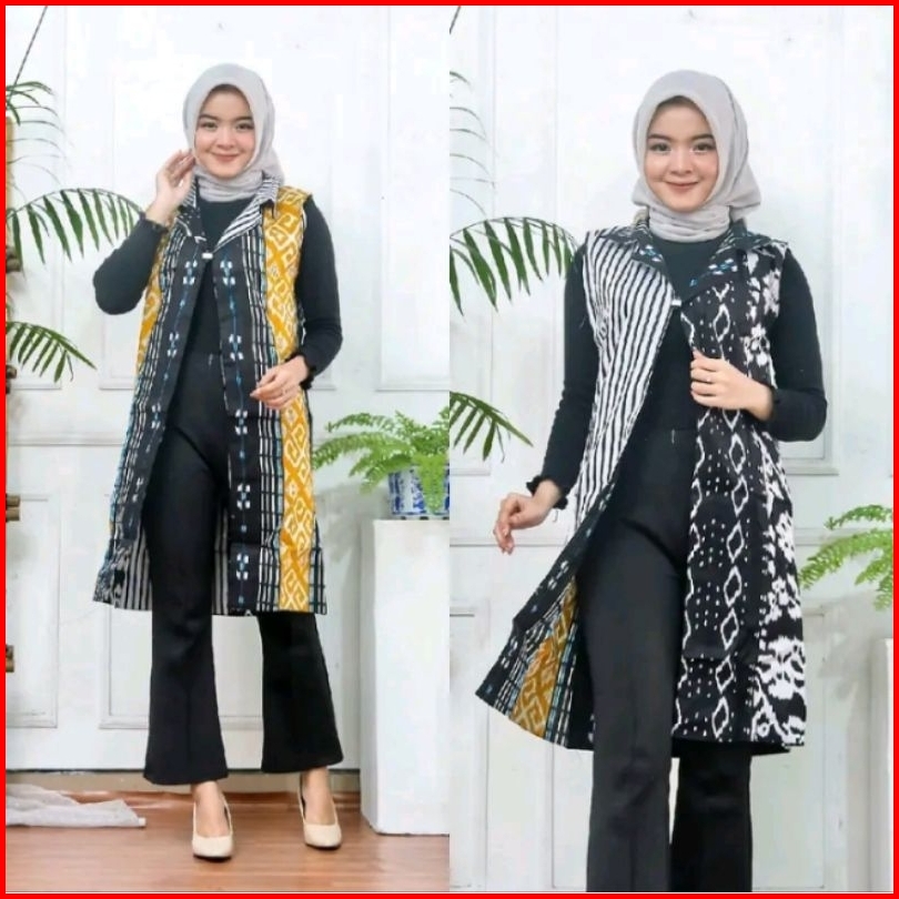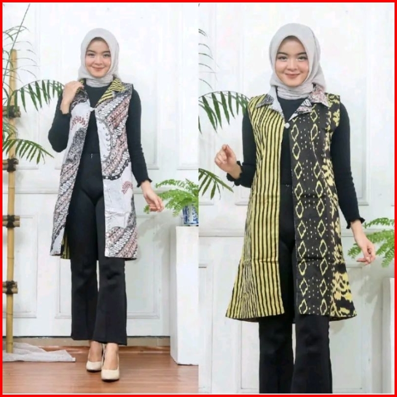 Blazer Outer Batik Wanita Cardingan Bahan Katun Bolak Balik