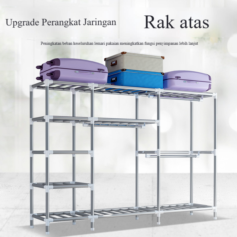LeeGo 82103143201245 Lemari Pakaian Kain Portable Rak Baju Susun Tirai Kain Jumbo Anti Debu Lemari Baju Gantung Rak Organizer Penyimpanan Serbaguna