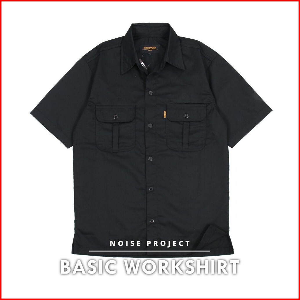 Tans - Kemeja Workshirt Polos Hitam Noise Project Original Kemeja Kerja Lapangan Lengan Pendek