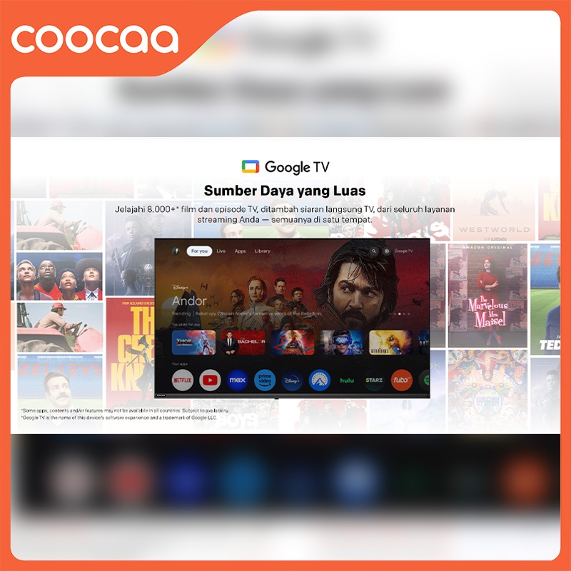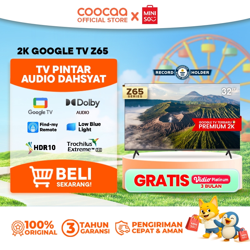 Tv Coocaa 32 Z65 Google Tv 2K Led Hdr 10 Flicker Low Blue Light Eye Care Wifi Usb Lan