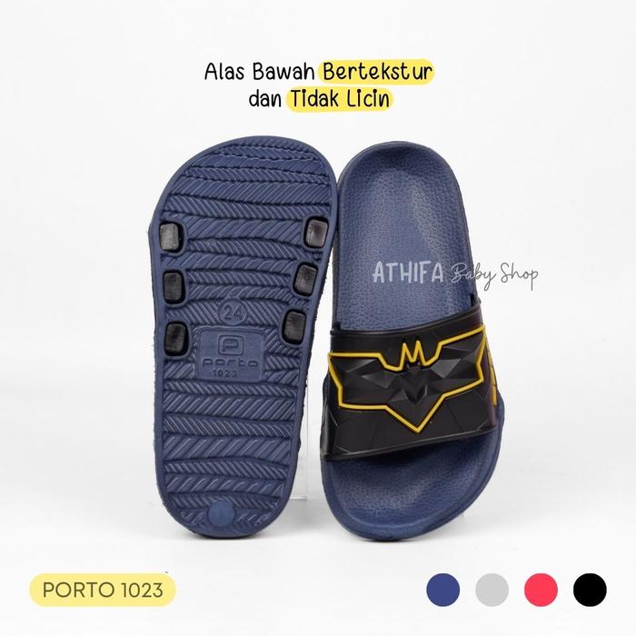SANDAL SLIPPER SLOP ANAK LAKI COWOK SENDAL SLIP ON BAYI BALITA KARAKTER SUPERHERO BATMAN UMUR USIA 1 2 3 4 5 TAHUN PORTO 1023 KAKI PEREMPUAN - MERAH, 24