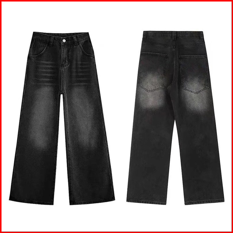 Celana Jeans Pria Panjang Baggy Hitam Straight Celana Denim Dewasa Kulot Loose Jumbo Cowok Korean