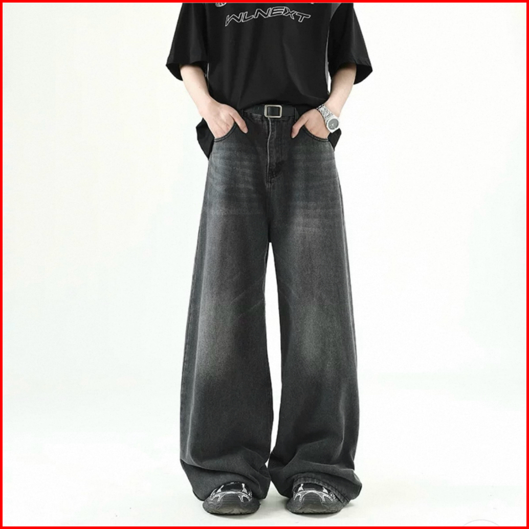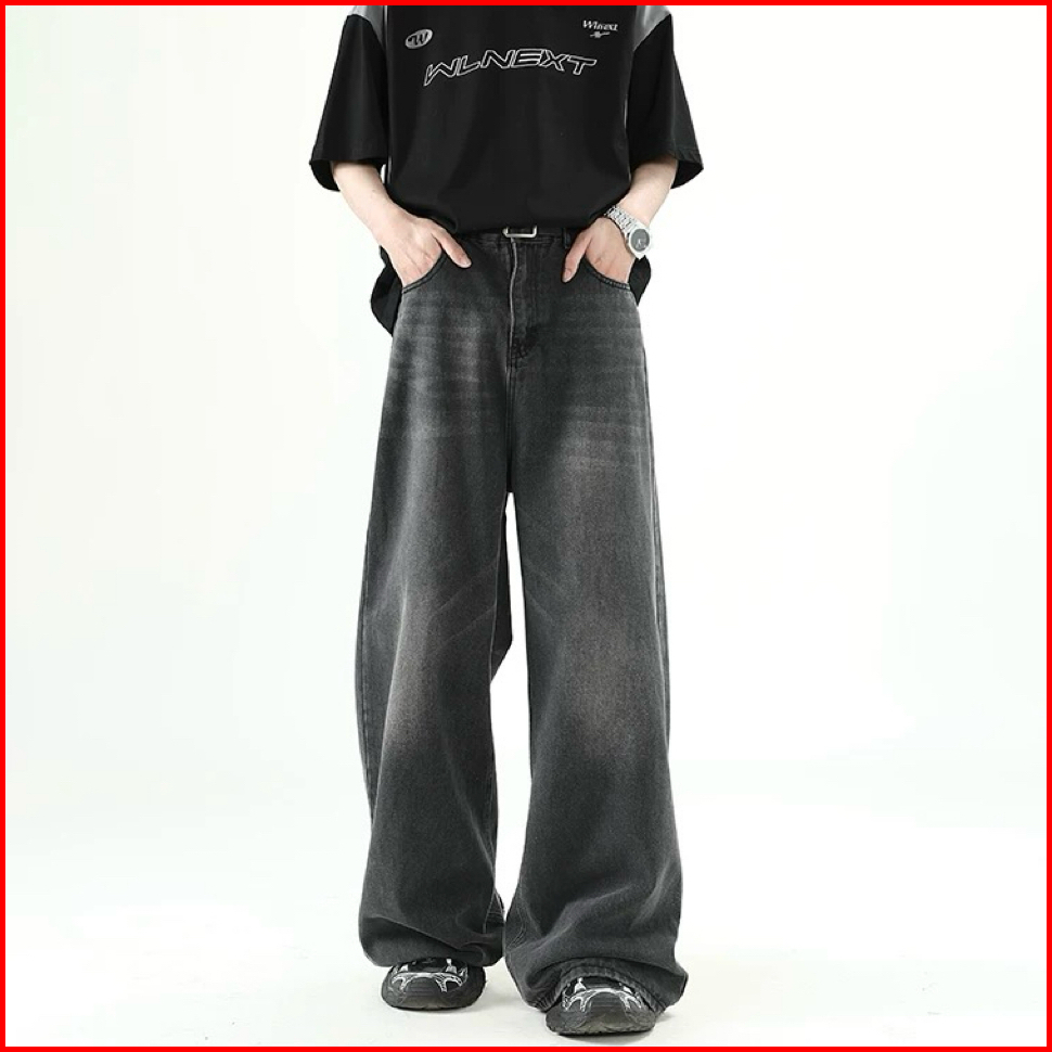 Celana Jeans Pria Hitam Longgar Oversize Baggy Straight Premium Casual Nyaman Celana Panjang Pria Jumbo Loose Fit