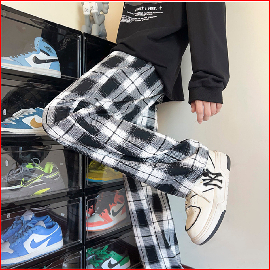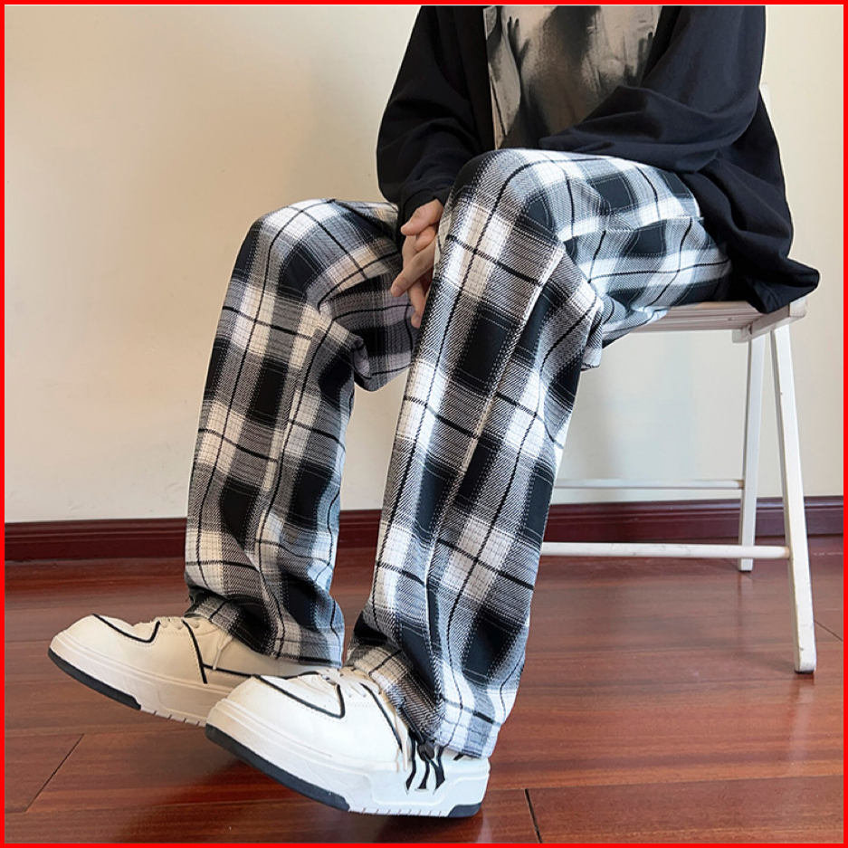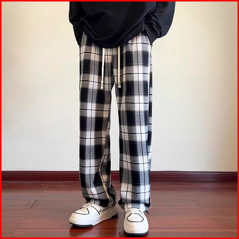 Celana Panjang Pria Gombrong Casual Kotak-kotak Korean Style Pants Baggy Celana Tartan Santai
