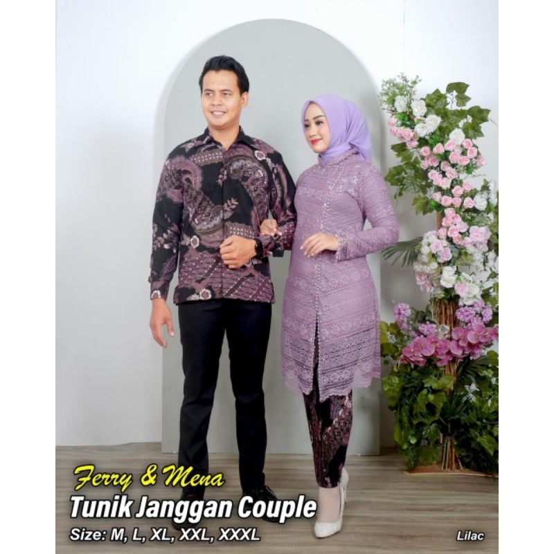 NEW PRODUCT !! COUPLE CANTIK SETELAN BAJU KEBAYA TUNIK JANGGAN BROKAT JUMBO LD 130 DENGAN KEMEJA BATIK HEM LENGAN PANJAN