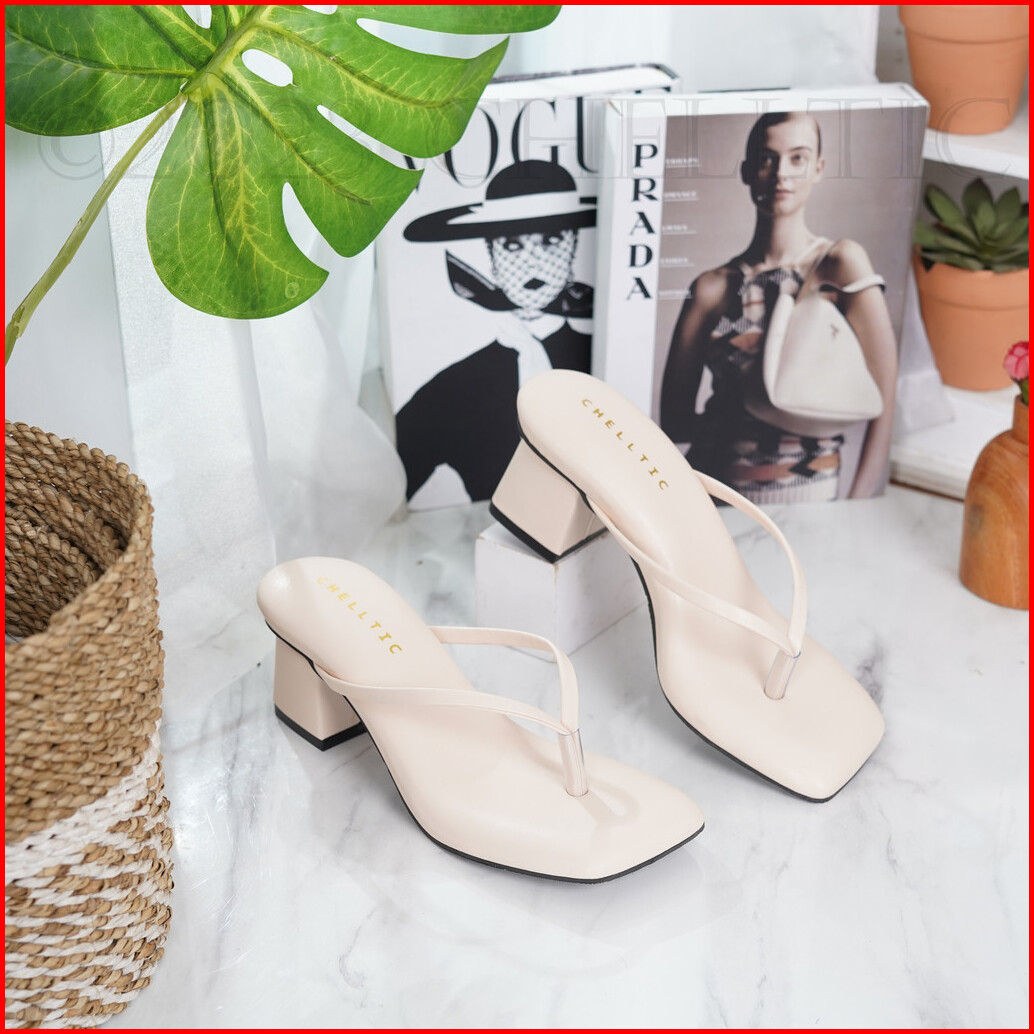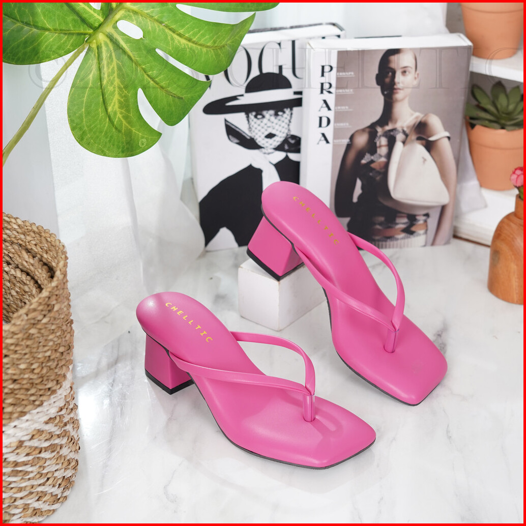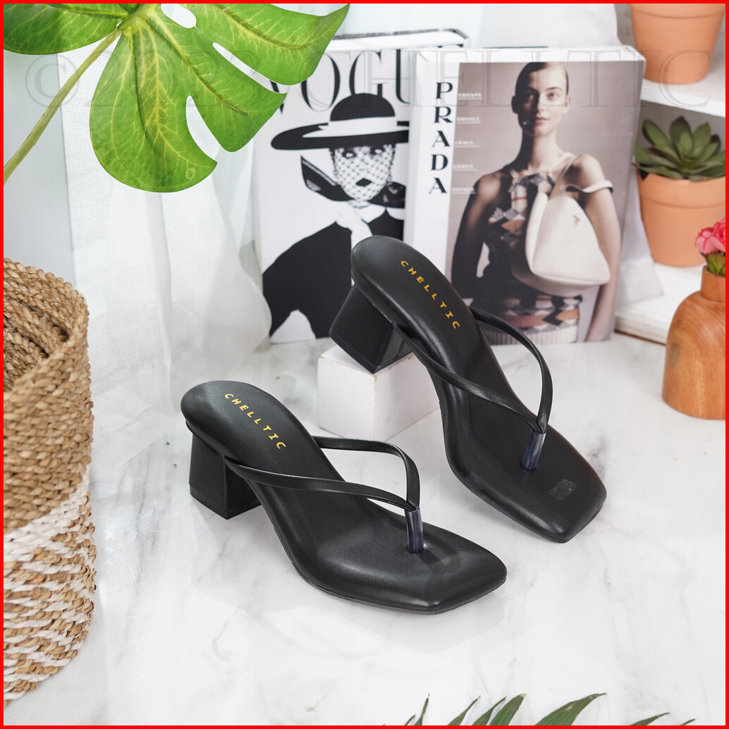 Chelltic Sandal Wanita Hak Tahu Tali Jepit Sendal Heels 5cm Elegan Warna Hitam Cream Mocca Fuschia Premium Series Sepatu