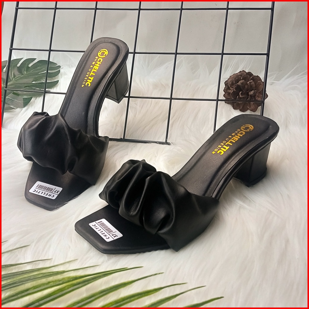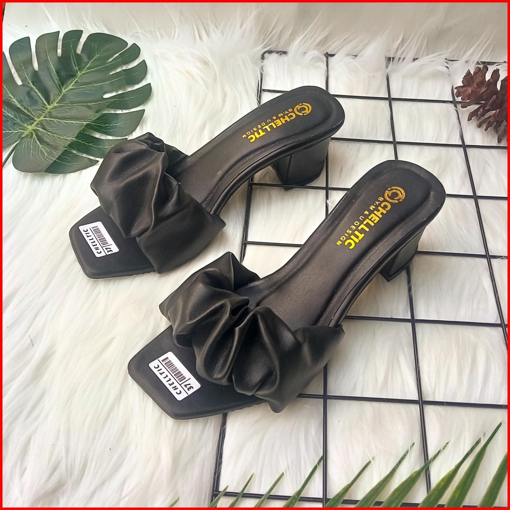 High Heels Wanita Aksen Kerut Sandal Hak Tahu 5cm Chelltic 07 Sendal Wanita Kekinian Terbaru Murah Wedges Wanita 5cm Sep