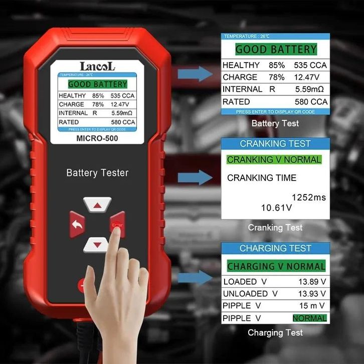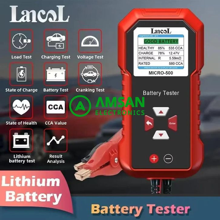 Lancol Micro 500 12V Car Battery Tester 40-3000 CCA Lithium Battery Test Lead Acid Battery Analyzer LED Display with QR