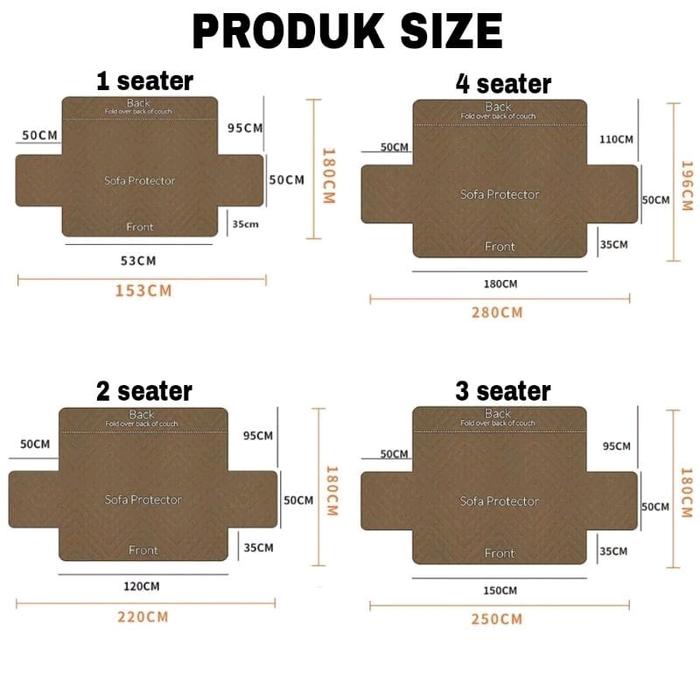 COVER SOFA PROTECTOR 1/2/3/4 SEATER SARUNG SOFA PROTEKTOR 1/2/3/4 DUDUKAN MODERN - COKLAT, 1 SEATER (53 CM)