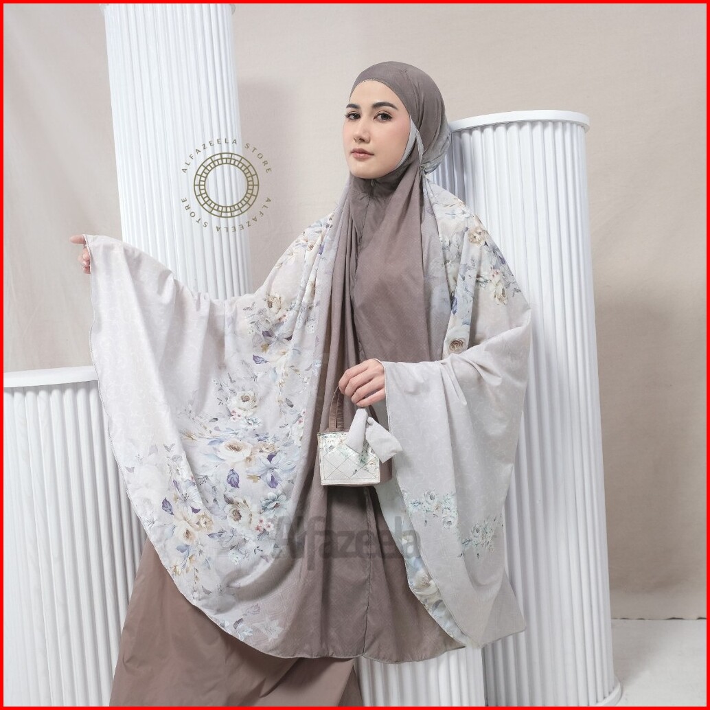 Alfazeela - Mukena Mini Parasut Premium Korea 2in1 Travel Motif Ibu Kost Tas Tote Mukena Tya Ariestya