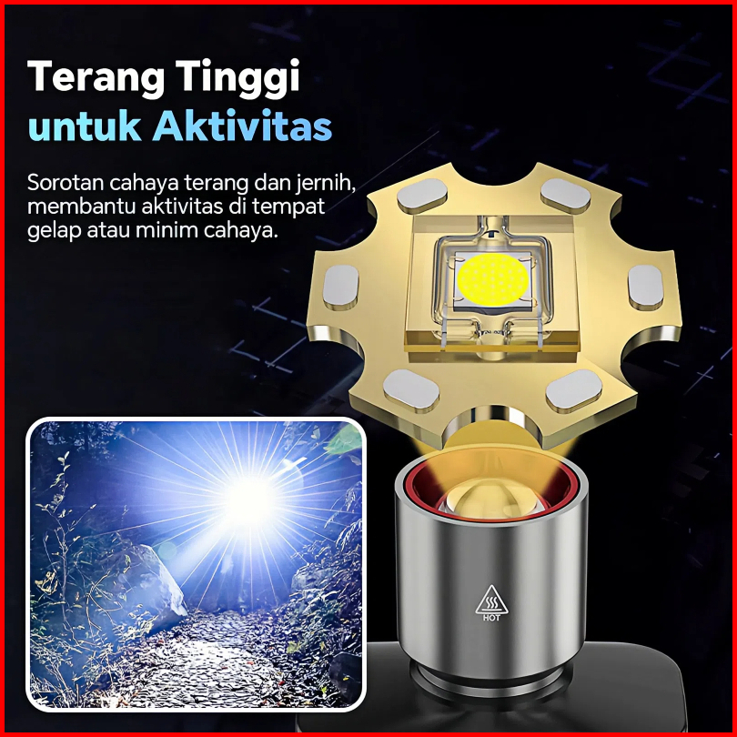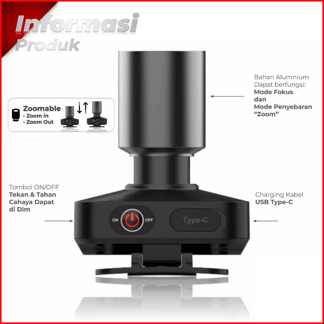 Senter Kepala Led Zoom 1200 Lumen Adjustable Anti Air Super Terang Led 3 Mode Cahaya Outdoor Senter