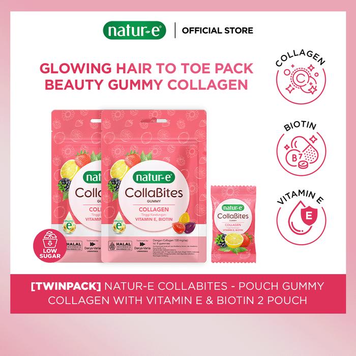 NATUR-E TWINPACK COLLABITES POUCH GUMMY COLLAGEN 2 POUCH - GUMMY DENGAN COLLAGEN, VITAMIN E & BIOTIN - MEMBANTU MENJAGA