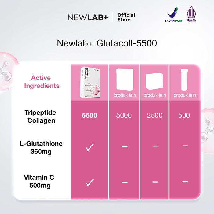 NEWLAB BRIGHTLOGY GLUTACOLL-5500 | COLLAGEN DRINK | MINUMAN COLLAGEN & MINUMAN GLUTATHIONE BPOM UNTUK MENCERAHKAN 15 SAC