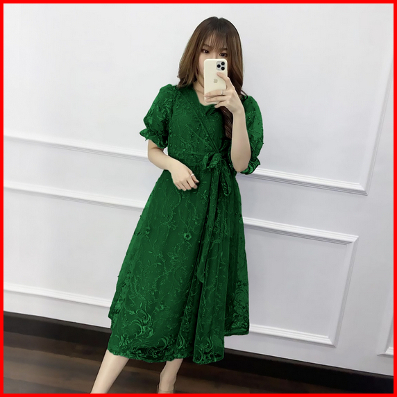 Midi Dress Natal Livina Ready 3ukuran M L Xl Rekomendasi Outfit Baju Pesta Kondangan Wanita Gaya Korea Brokat Tile Impor