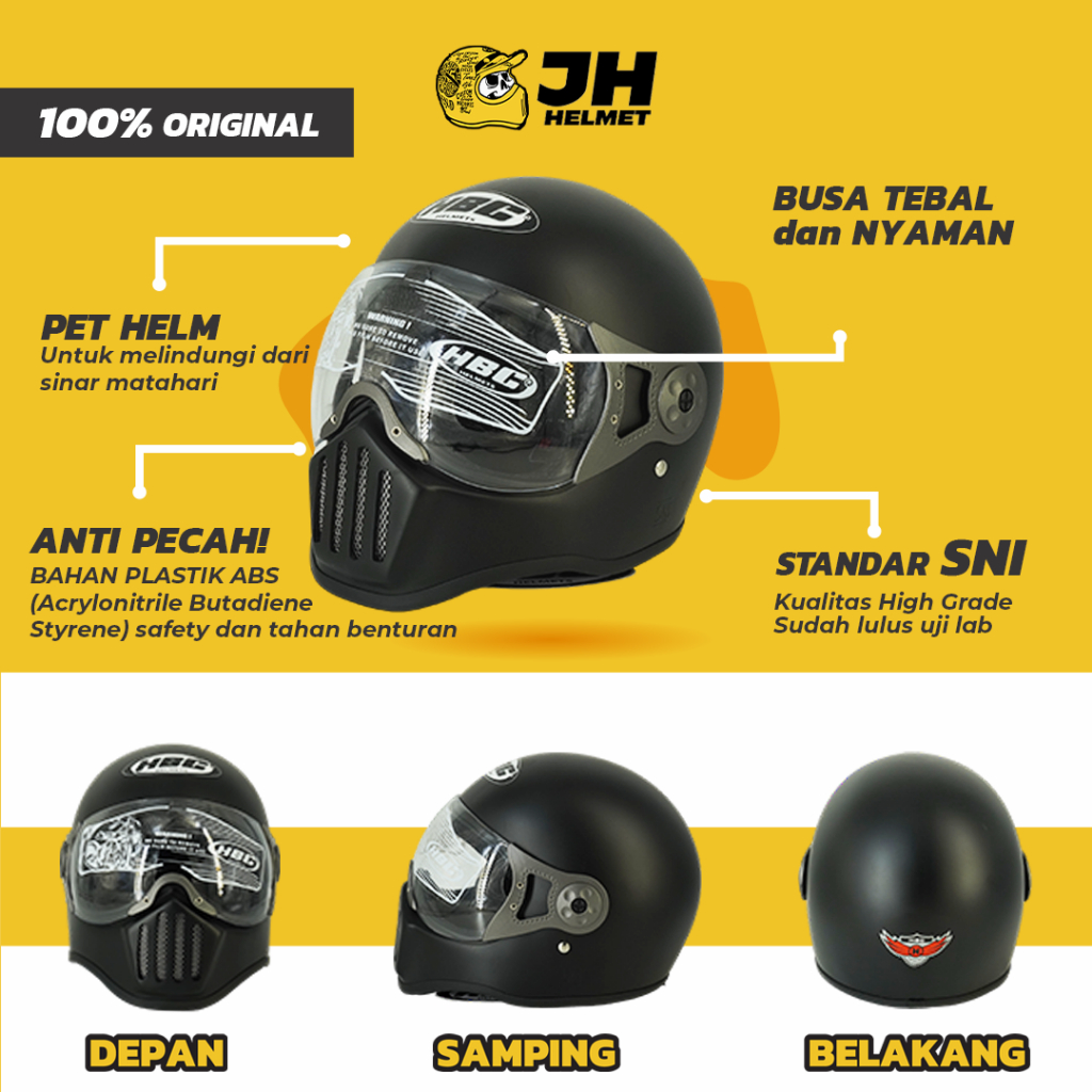 Helm Cakil HBC Pilot Visor + Free Sarung Tangan | Helm Retro | Full Face | Jual Helm