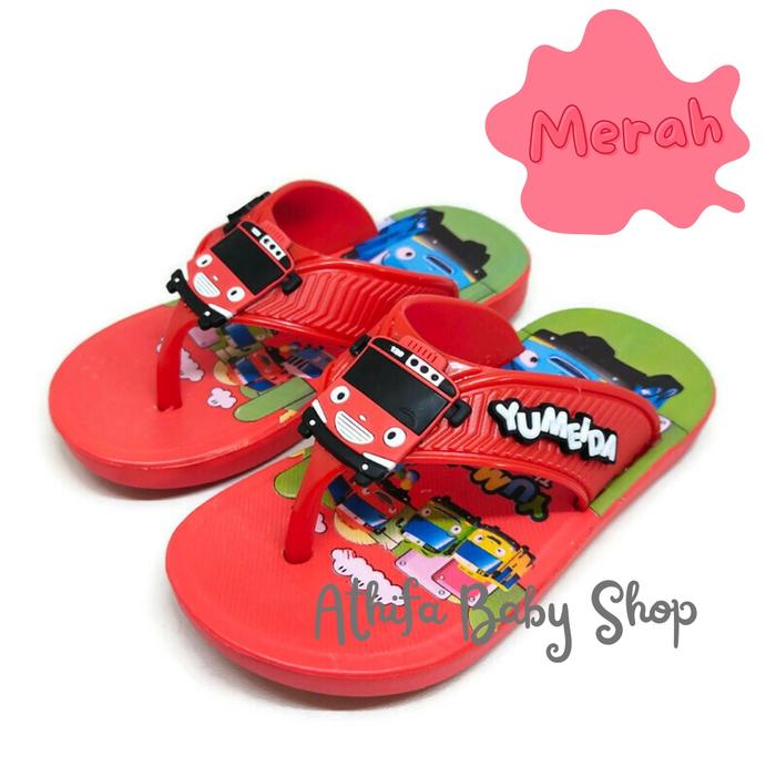 SANDAL JEPIT ANAK LAKI-LAKI COWOK SENDAL JAPIT KAKI BAYI EMPUK BALITA KARAKTER TAYO UMUR USIA 2 3 4 5 TAHUN - MERAH, 13