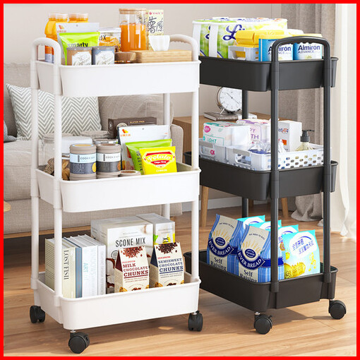 Rak Troli Susun Serbaguna Kamar Mandi Rak Salon Rak Susun Aesthetic Penyimpanan Dapur Dengan Roda