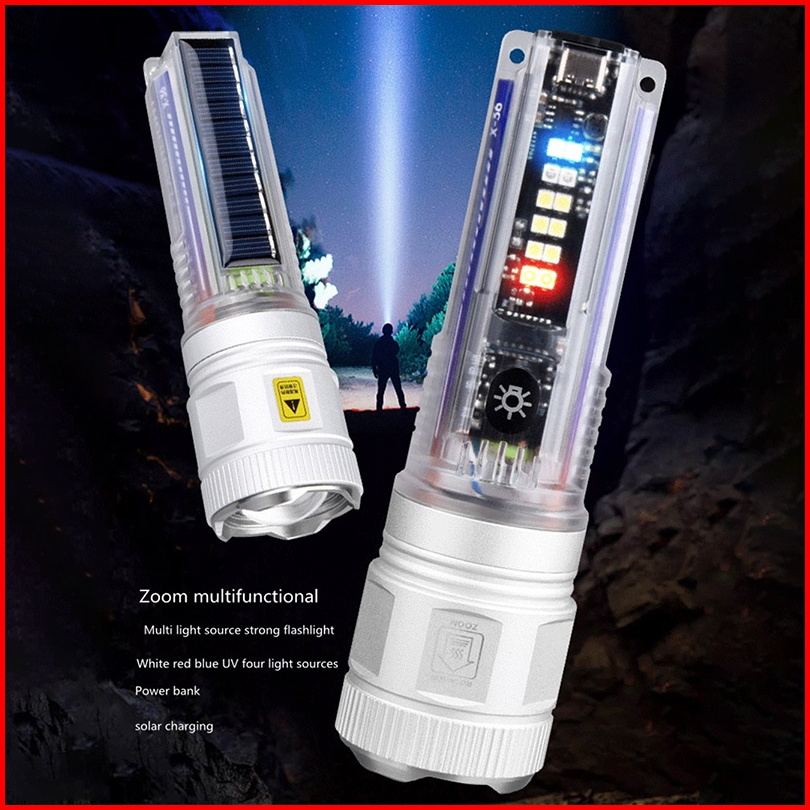 Senter X36 Led Laser Bisa Zoom - Cahaya Terang - Bisa Jadi Powerbank - Tenaga Matahari - 7 Mode