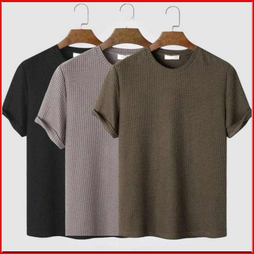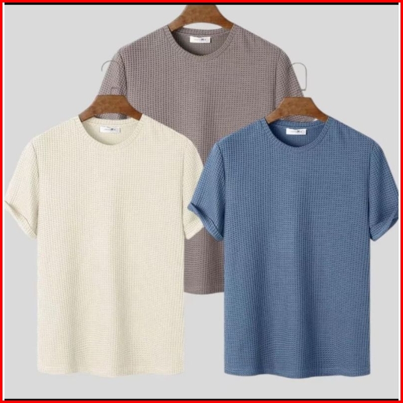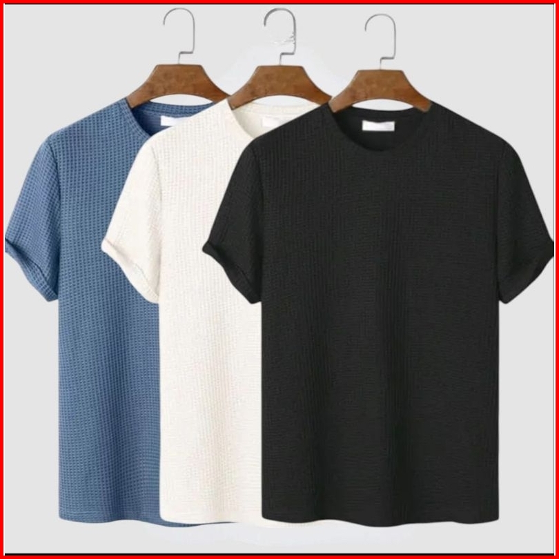 Paket Discount 3pc Kaos Pria Polos Bahan Waffle Lengan Pendek Atasan Pria Kaos Polos Pria