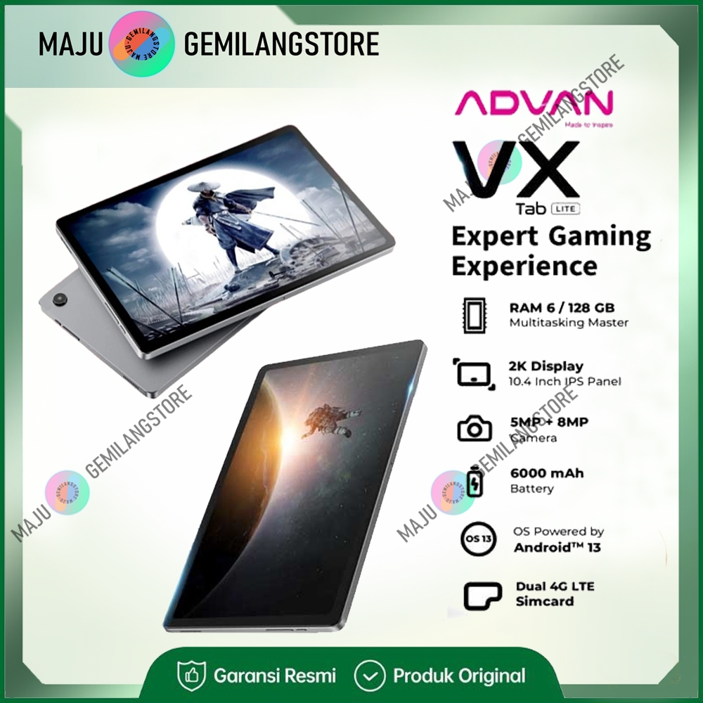 ADVAN TAB VX LITE ram 6GB 128GB Tablet 10.4” Octa Core 2.0Ghz - Dual SIM Card 4G LTE - Garansi Resmi