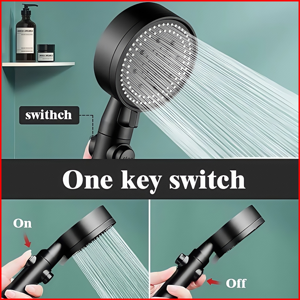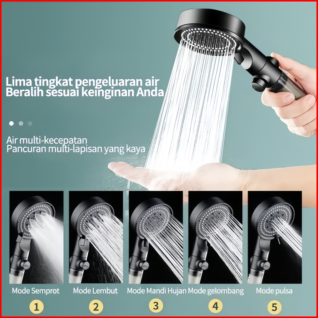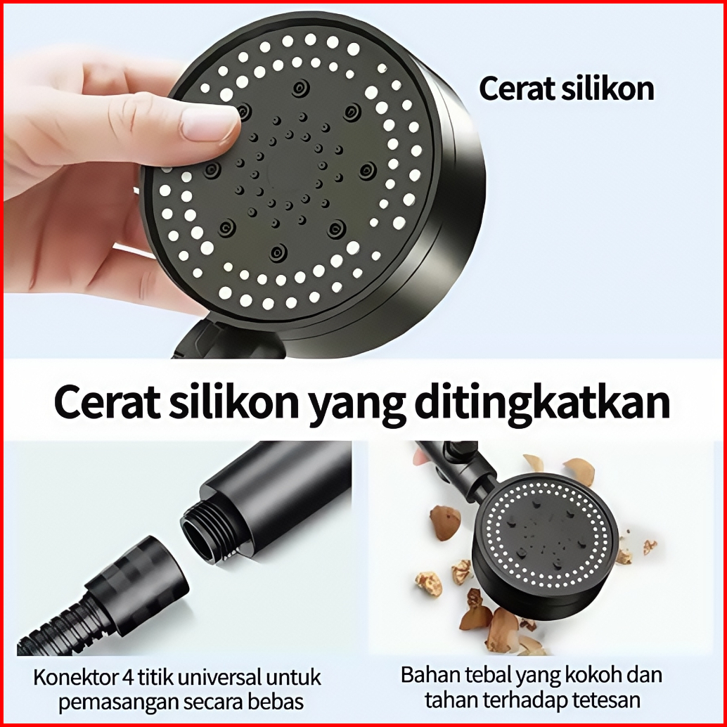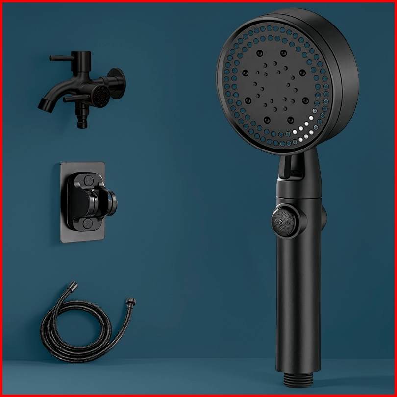 Shower Head 3 In 1 Anti Bocor - Kepala Shower Set Hitam Metalik Premium 5 Mode Bisa Diatur Tekanan Kuat Selang Flexibel