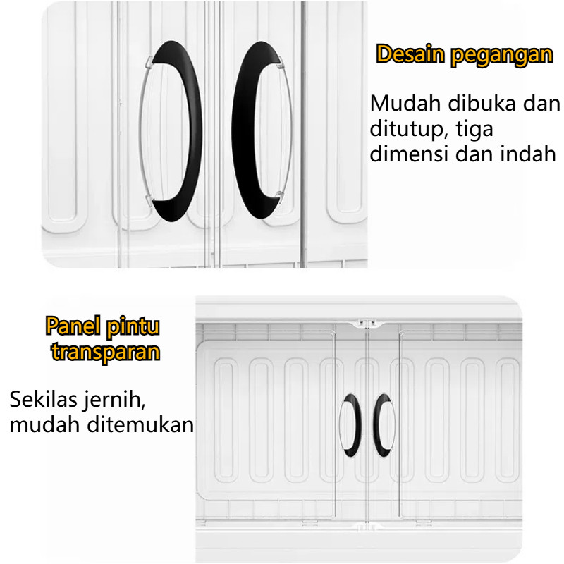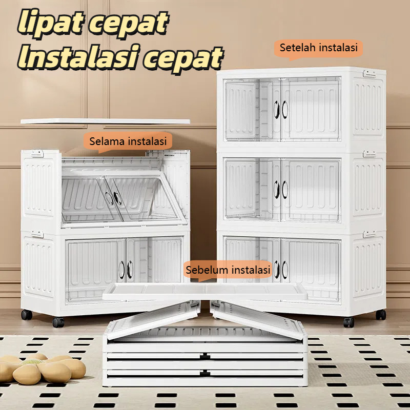 Rak Kabinet Susun Lipat Kapasitas Besar Tutup Transparan Lemari Plastik Rak Buku Serbaguna
