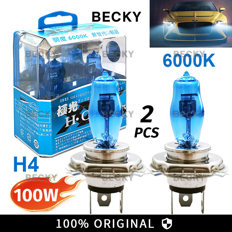 Becky Lampu Depan Mobil Led Super Terang 2Pcs Lampu Halogen H4 100W 12V 6000K Warna Putih Untuk Fog Lamp / Headlight Mob