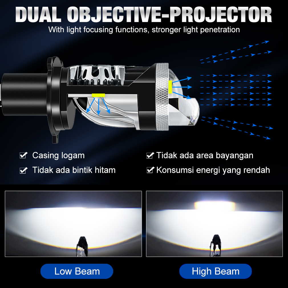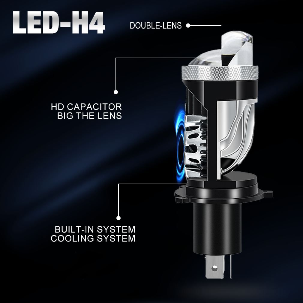 Bestdrone 100W Daya Tinggi Lampu Depan Mobil Led H4 Lensa Kembar Kuning Putih Canbus 6500K Putih Dc 9-36V
