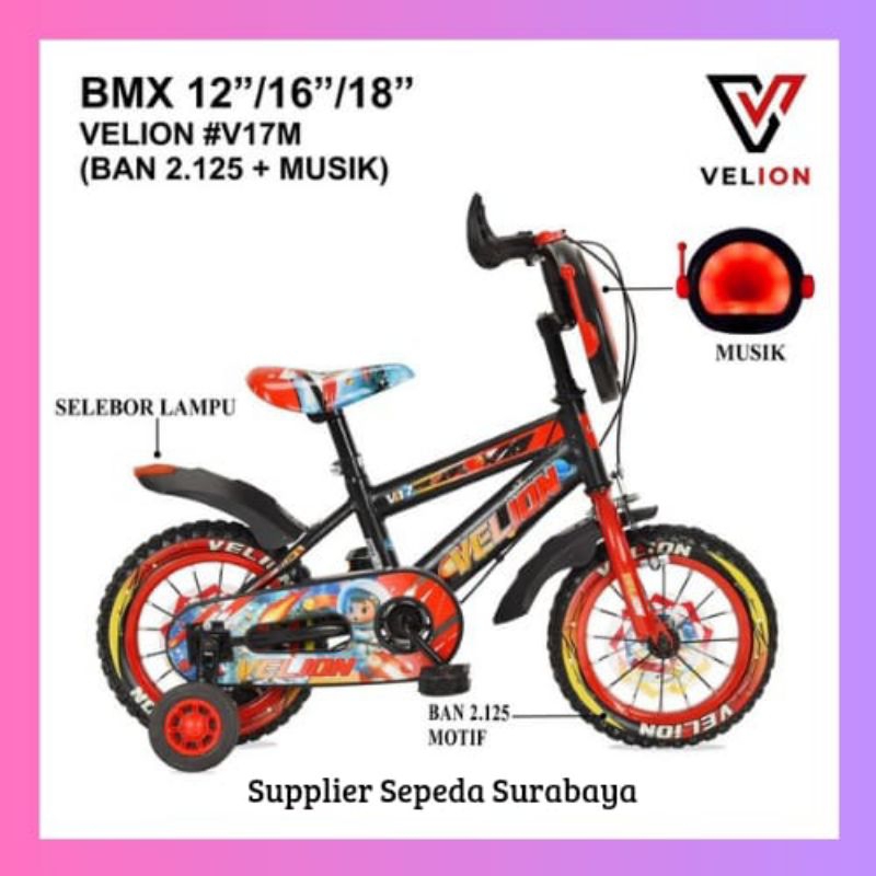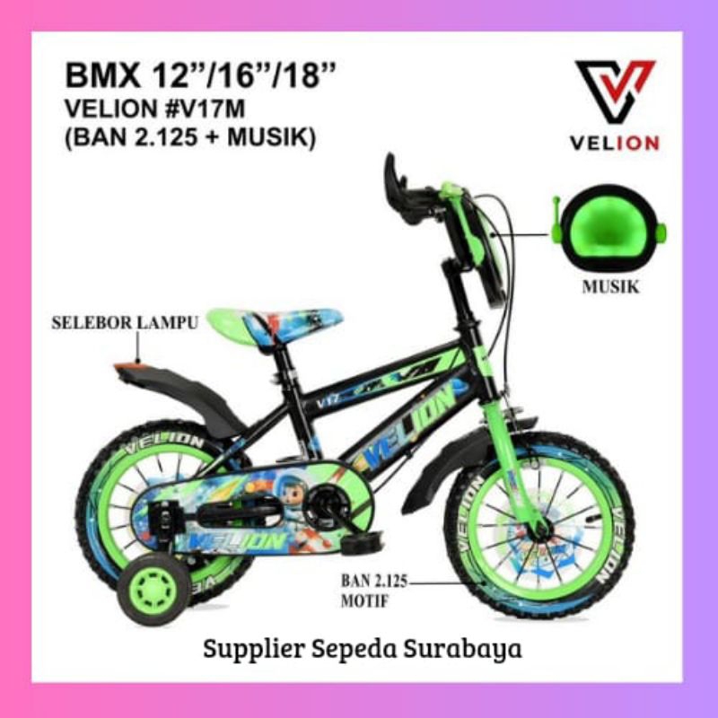 SEPEDA ANAK LAKI BMX VELION V17M STIR TAMENG LAMPU DAN MUSIK UKURAN 12/16/18 INCH,SEPEDA READY SEMUA WARNA - NEW