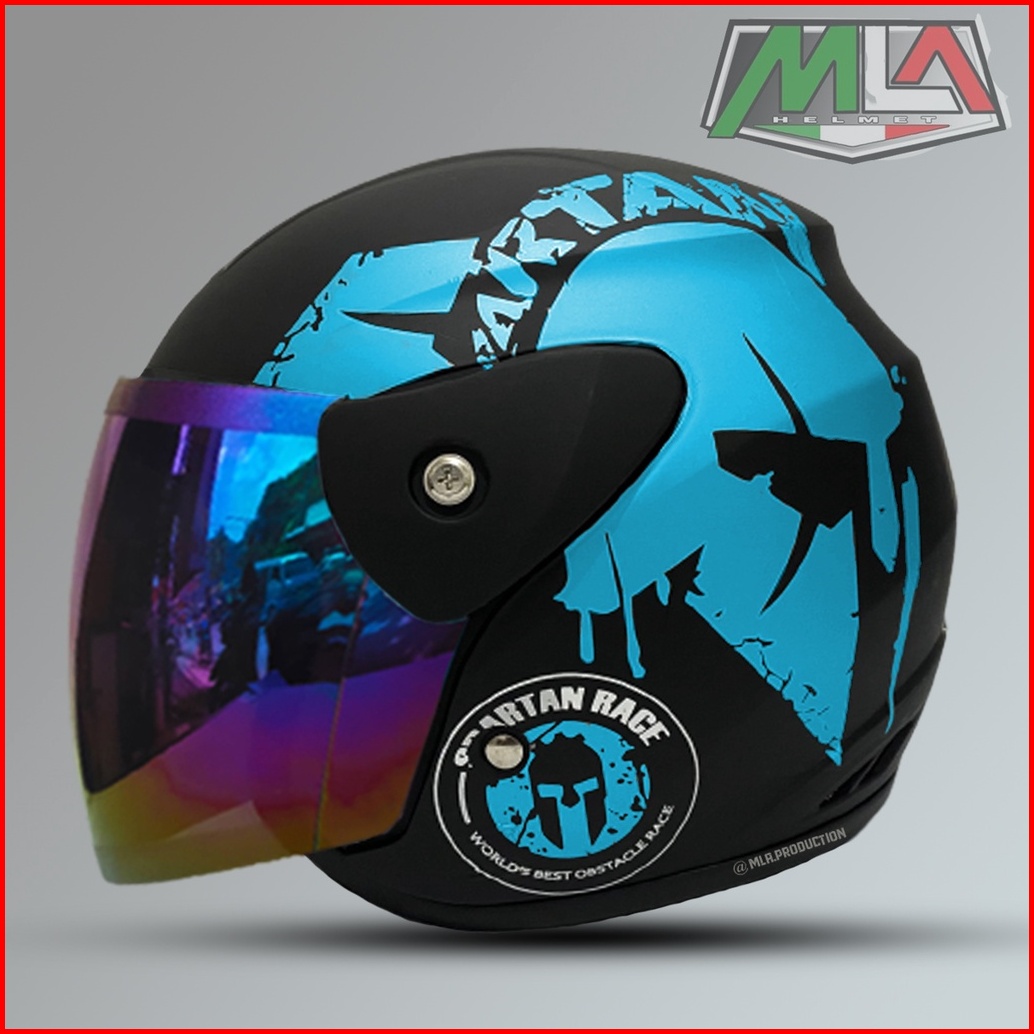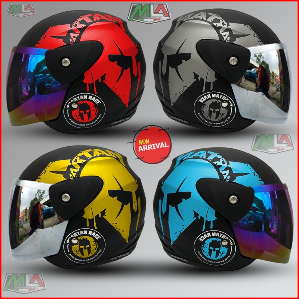 Helm Motor Half Face Evo Inovation Sni Seperti Helm Gm Original Motif Spartan Kaca Silver Kaca Pelangi Premium Untuk Hel