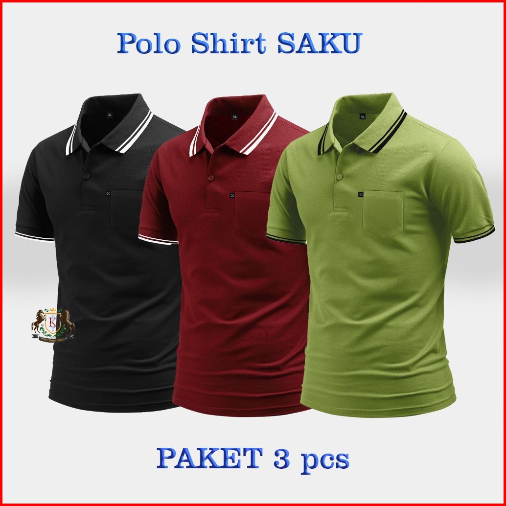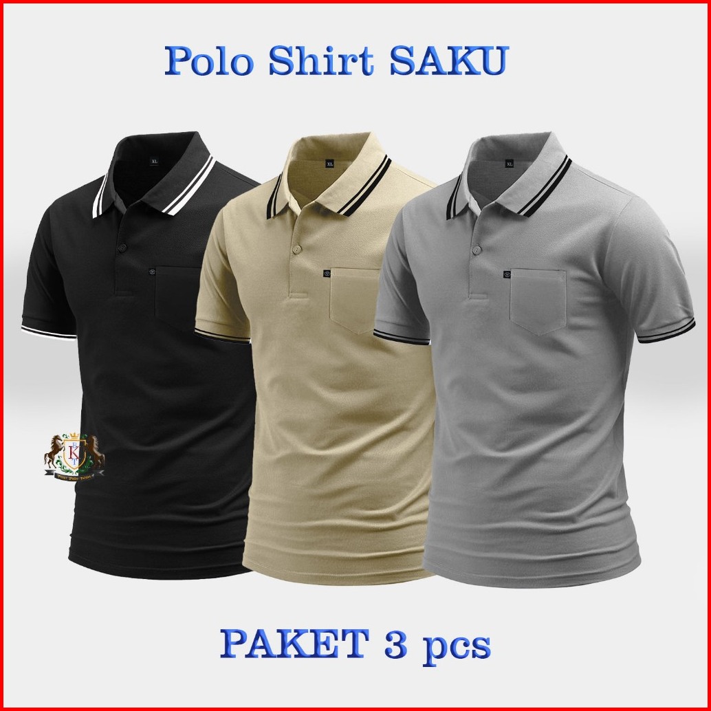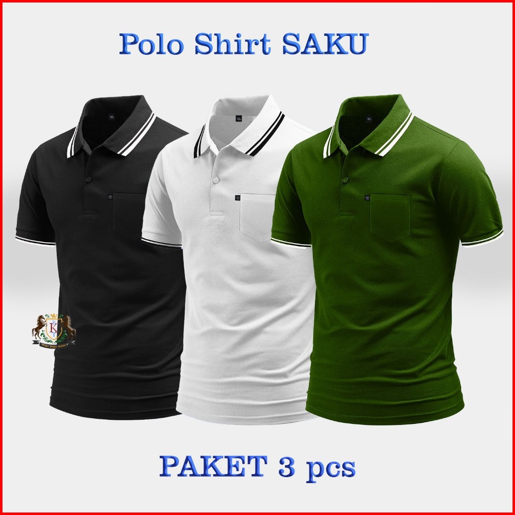 Bkt Paket Hemat 3 Pcs Polo Shirt Pria Saku Kaos Polos Bahan Tebal