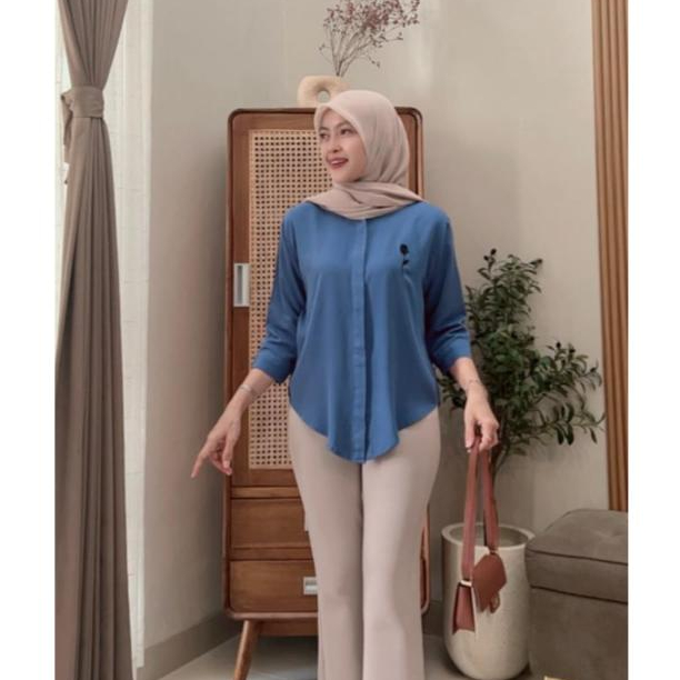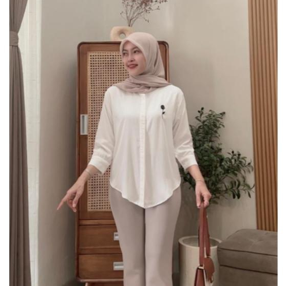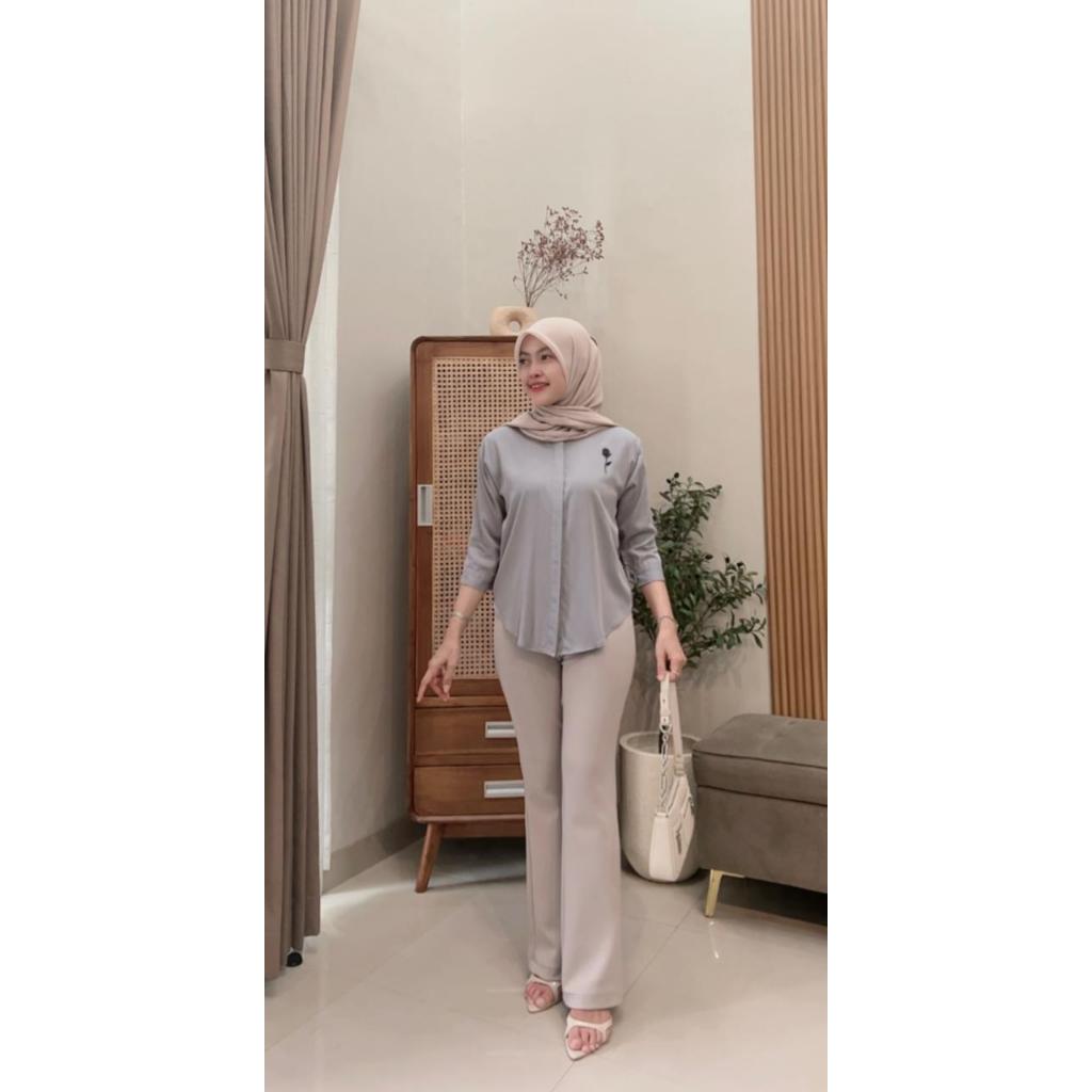 Kemeja Bordir Wanita Bahan Rayon Twill Premium Motif Bunga Bordir Lengan 7/8 Terbaru MONICA BLOUSE
