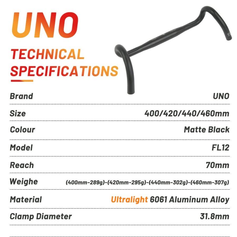UNO FL12 Dropbar Flare Stang Sepeda Gravel Touring Roadbike Alloy 31.8