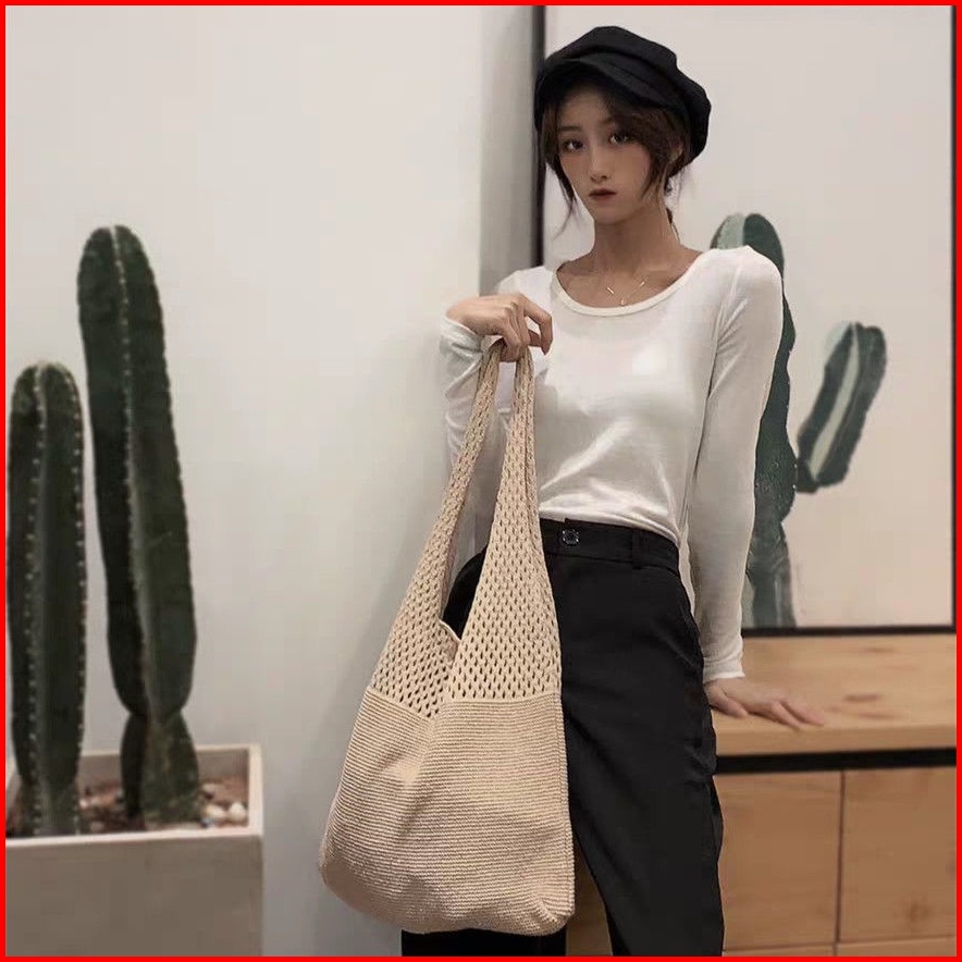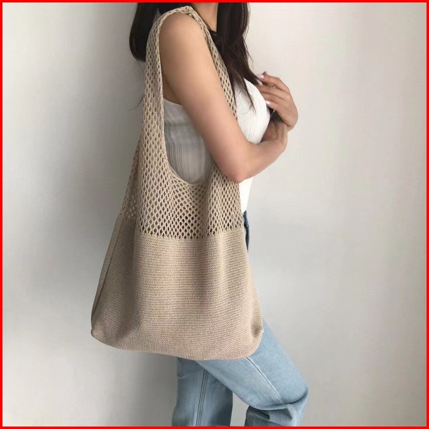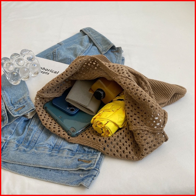 Little Maple Bella Knitted Tote Bag Tas Korea Rajut Besar Pantai Tas Kasual Casual