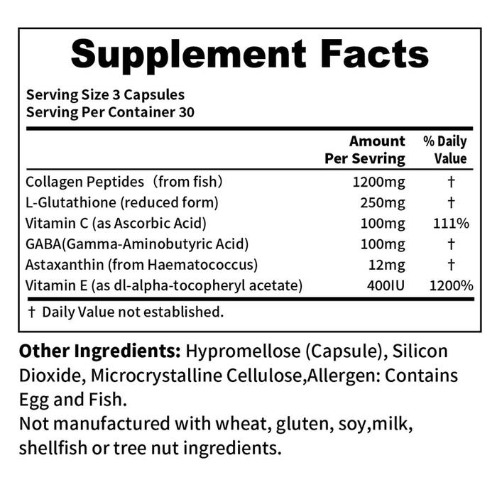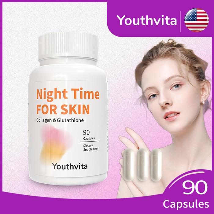 YOUTHVITA COLLAGEN PEPTIDES L-GLUTATHIONE VITAMIN C GABA ASTAXANTHIN VITAMIN E NIGHT TIME FOR SKIN 90 CAPSULES